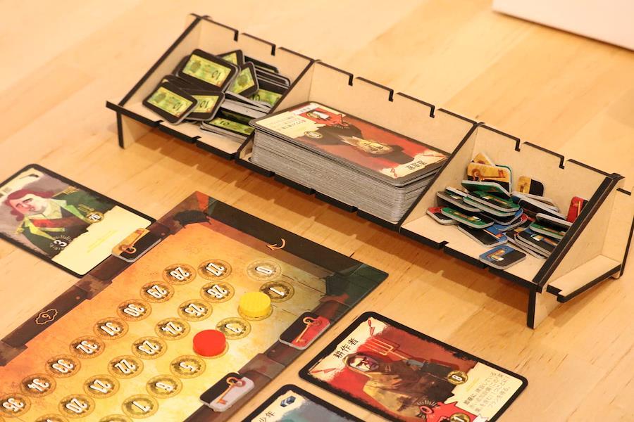 多くのカード・コイン・トークン等でテーブルの上が乱雑になりがちなボードゲーム用に開発された、さまざまなゲームに最適化して使える汎用トレイです。 ・量、大きさに合わせて仕切り場所が変更できます。 ・接着剤なしで組み立て可能。持ち運びにも便利です。 ・傾斜がついており、積み重なったカードも固定できます。 多くのカード・コイン・トークン等でテーブルの上が乱雑になりがちなボードゲーム用に開発された、さまざまなゲームに最適化して使える汎用トレイです。 量、大きさに合わせて仕切り場所が変更できます。 接着剤なしで組み立て可能。持ち運びにも便利です。 傾斜がついており、積み重なったカードも固定できます。