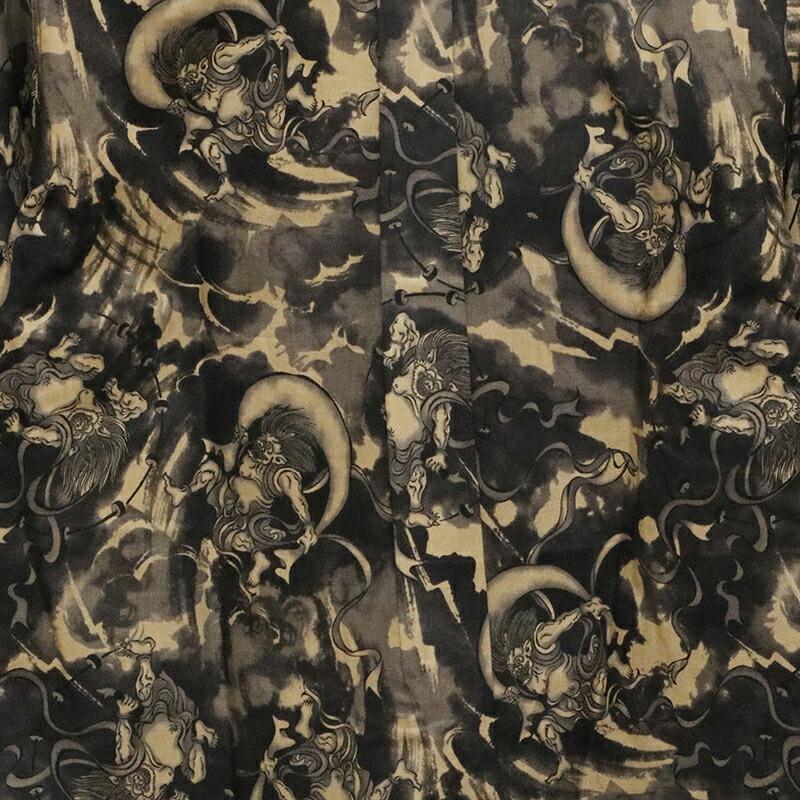 ムラ染め抜染調 風神雷神 柄 シーチング 素材 和柄 長袖 レギュラー シャツです。