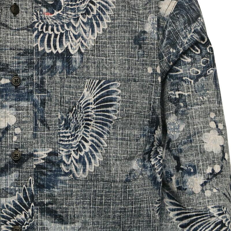 長寿の象徴として有名「鶴亀」を裏地使いし総柄であしらった長袖シャツ。