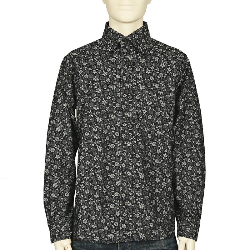 90oz デニムジャガード 長袖 レギュラーシャツ フローラルフラワーnbsp;です。