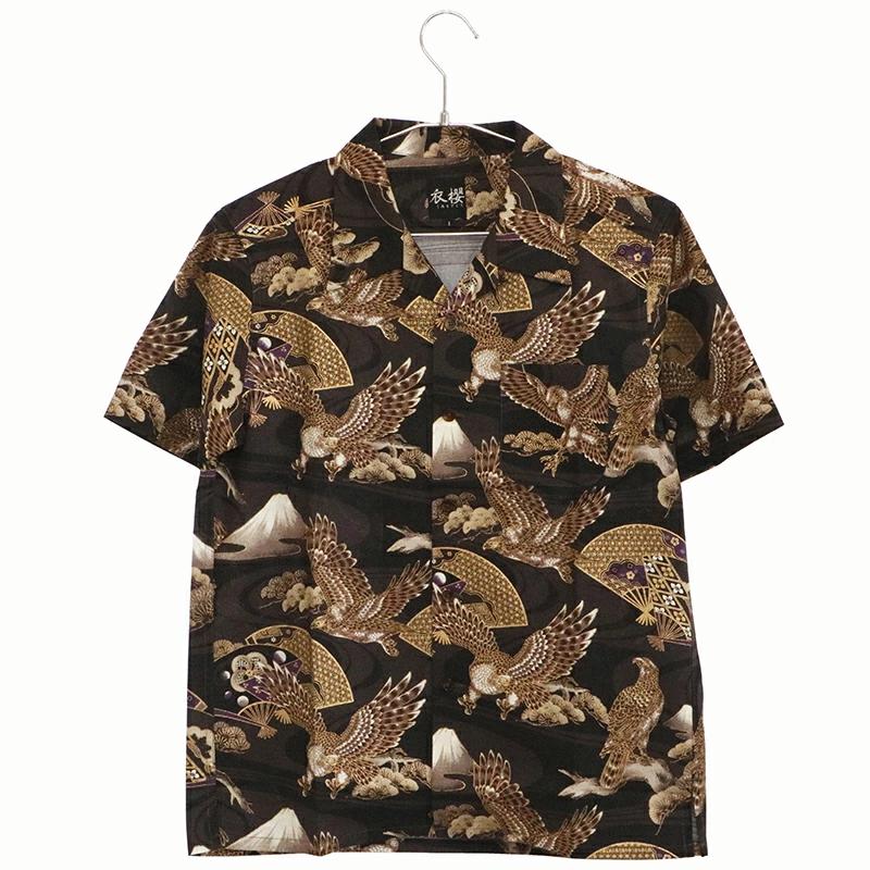 富士と鷹 柄 シーチング素材 コットン アロハシャツ