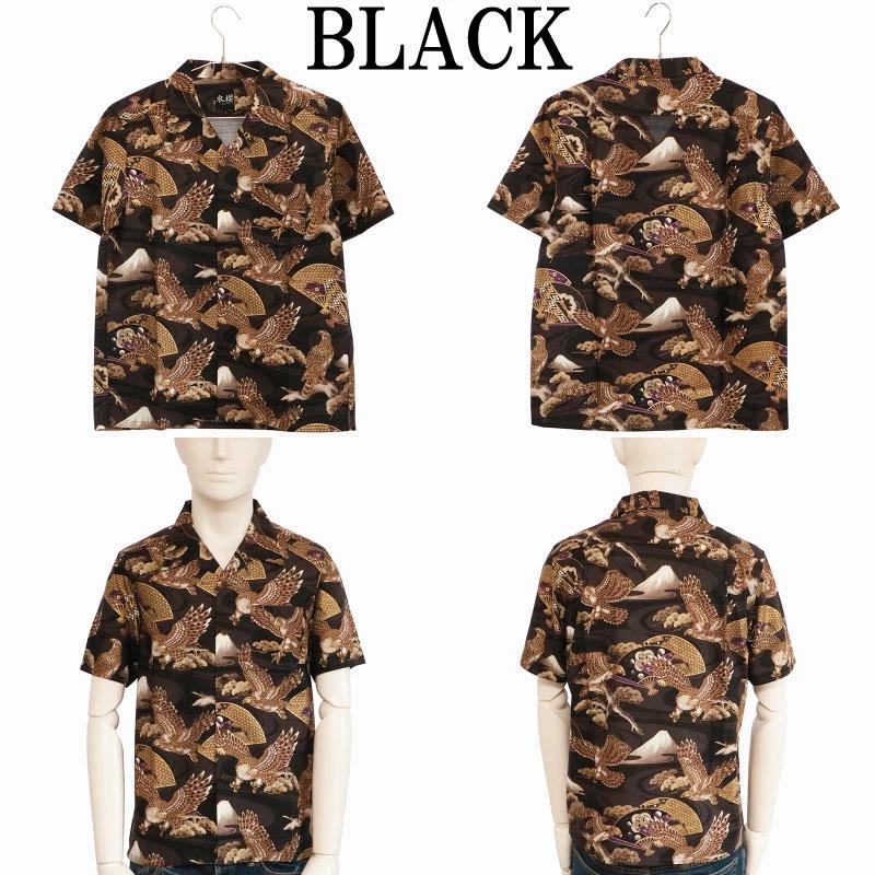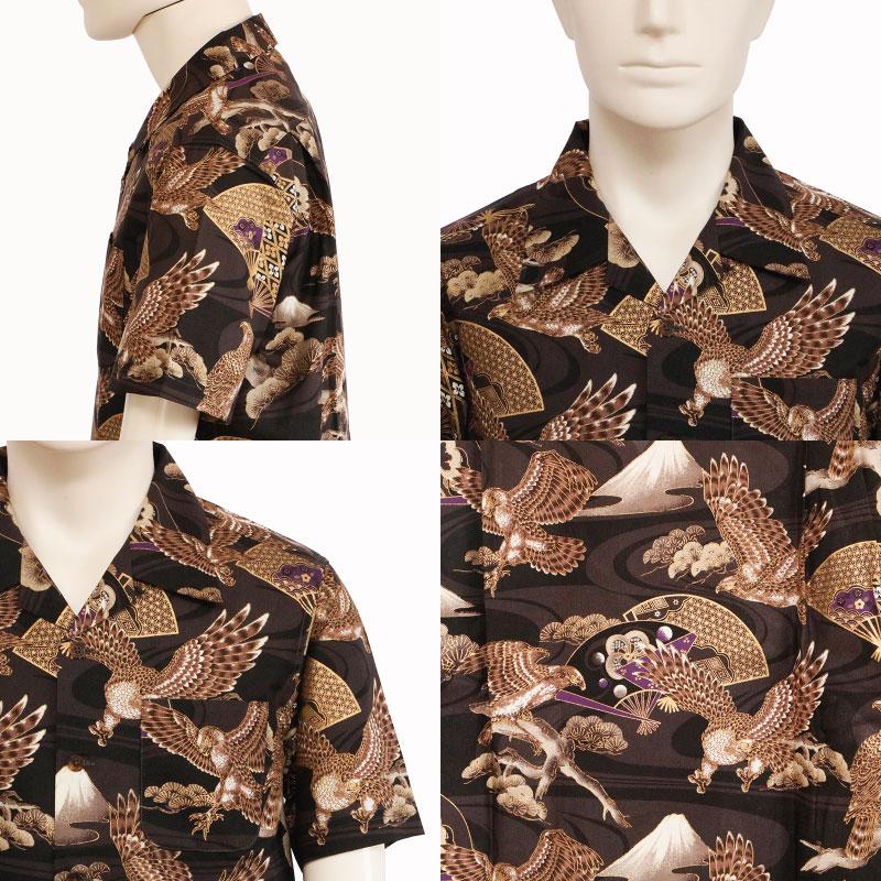 富士と鷹 柄 シーチング素材 コットン アロハシャツ