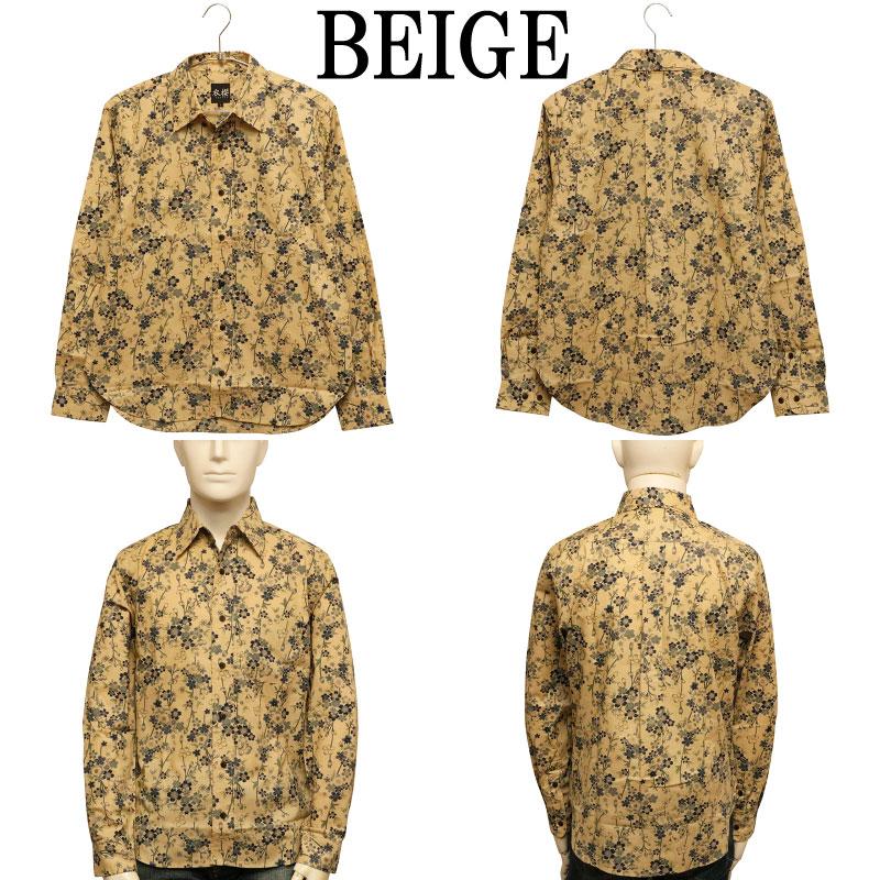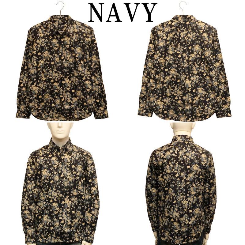 枝垂桜 柄 シーチング生地 和柄 長袖 レギュラーシャツ