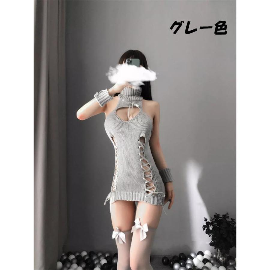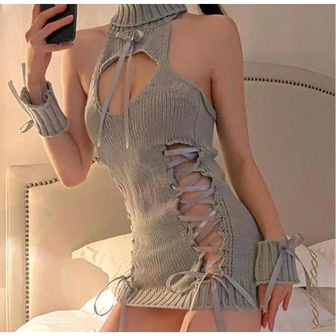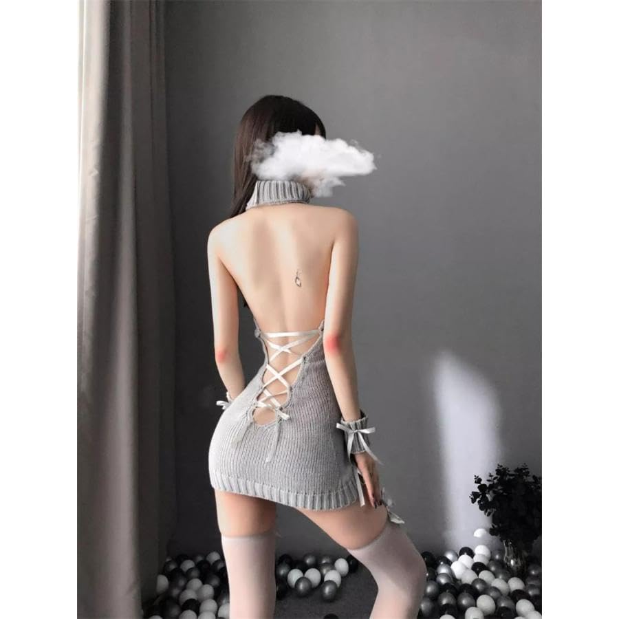 [Koushinrakudo] Virgin Killer Sweater Part 2 Babydoll Sexy Turtleneck with Open Back and Neck 3-Piece Set [Dress/Bracelet x