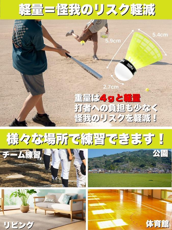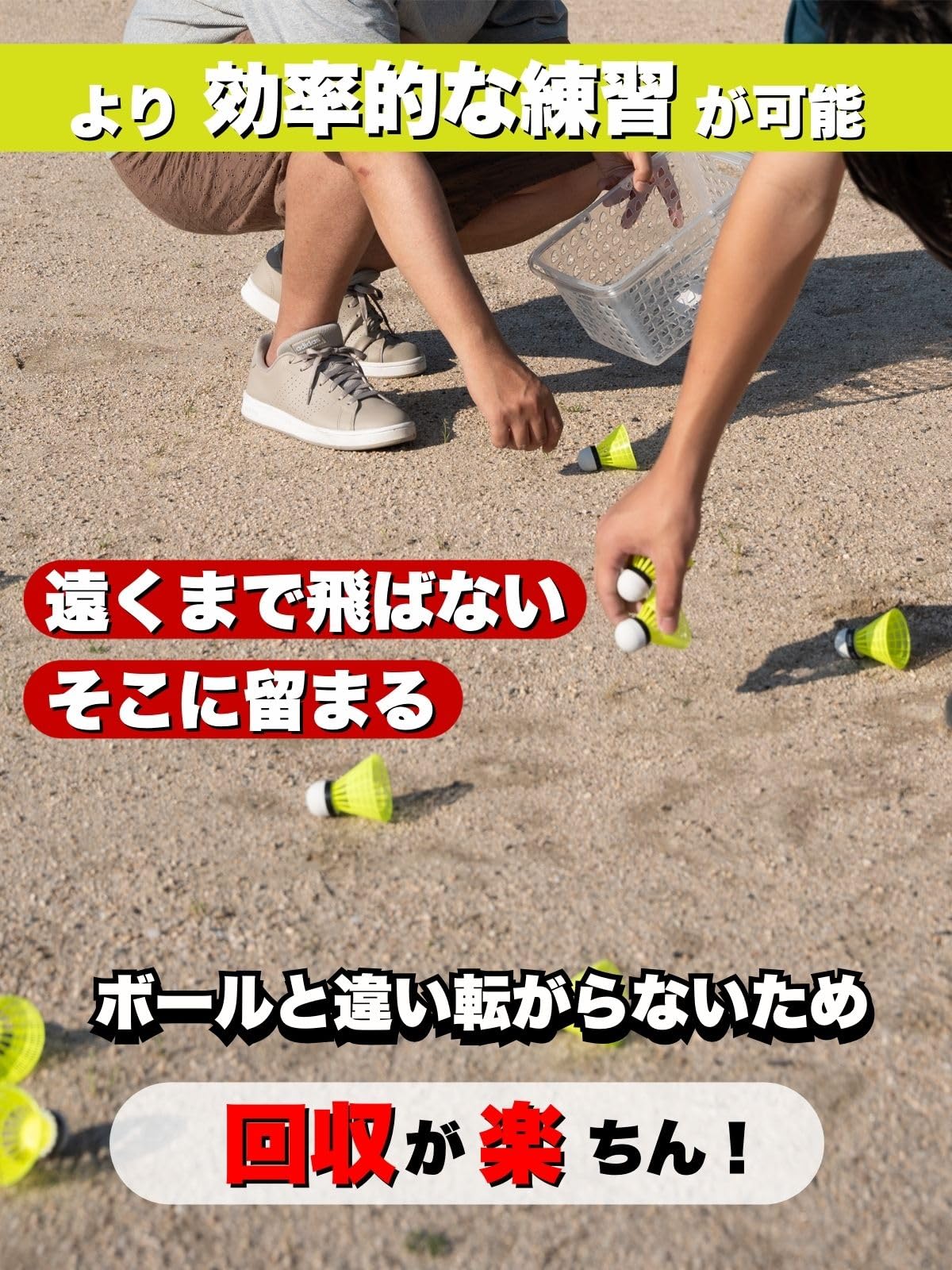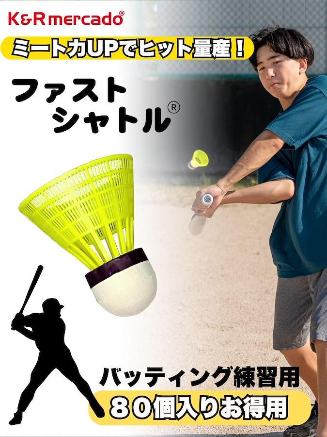セット内容 数量:80個 シャトル1個の重量:約4g 羽根:ナイロン コルク部:EVA素材 ※他社が製造販売を行っているシャトルバッティングマシンとは無関係な商品です。練習の際は周囲の状況を確認し安全を確保したうえでご使用ください。特徴:バッティング練習専用シャトル。羽が小さく空気抵抗が少ないため直線的軌道で投げることができる。野球のボールより小さいためボールを芯でとらえる練習になる。ボールのように遠くに転がらないので回収するのが手間が少ない。直線的軌道:バッティン練習専用の小さな羽のシャトルのため、投げる時の空気抵抗が少なく直線的軌道で投げることができる。より実践向きの練習が可能。回収の手間が少ない:ボールのように転がらないので遠くに拾いに行く手間が省ける。50個とたくさん入っているが回収に手間がかからないため練習時間を有効に使える。怪我の防止:軽量であるため打撃の衝撃が少なく怪我のリスクが軽減できる。【免責事項】メーカーによる商品リニューアルに伴いパッケージ(内容量も含む)変更が行われた場合、新パッケージでお届け致します事ご了承願います。