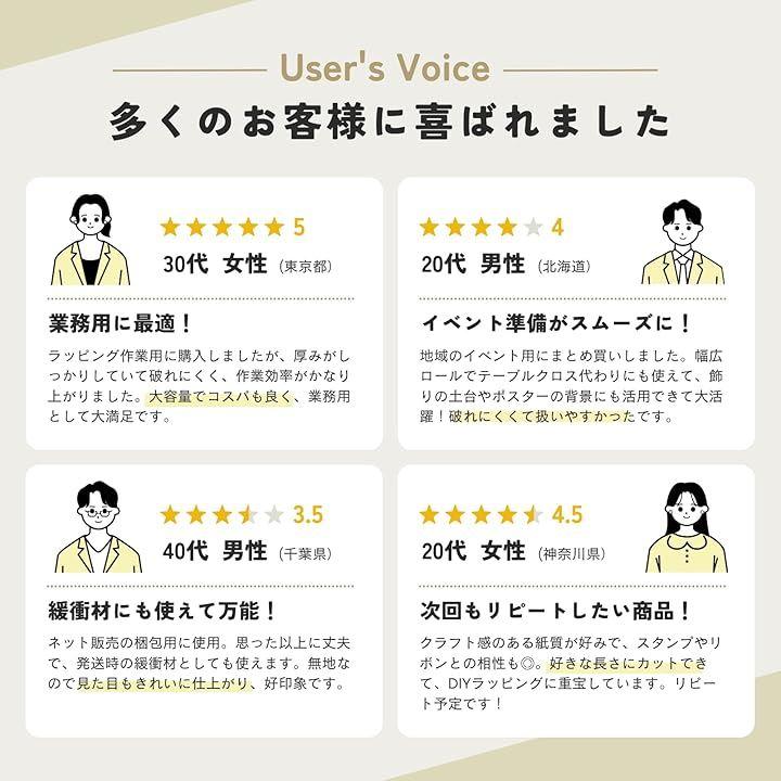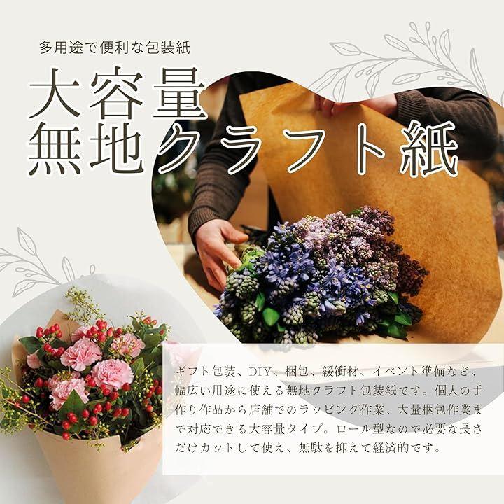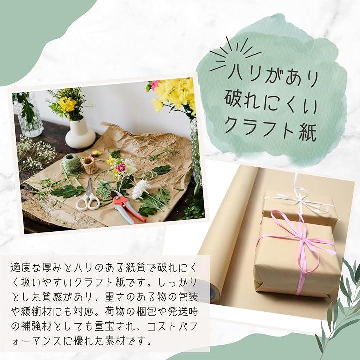 「多用途で便利な包装紙」 ギフト包装、DIY、梱包、緩衝材、イベント準備など、幅広い用途に使える無地クラフト包装紙です。