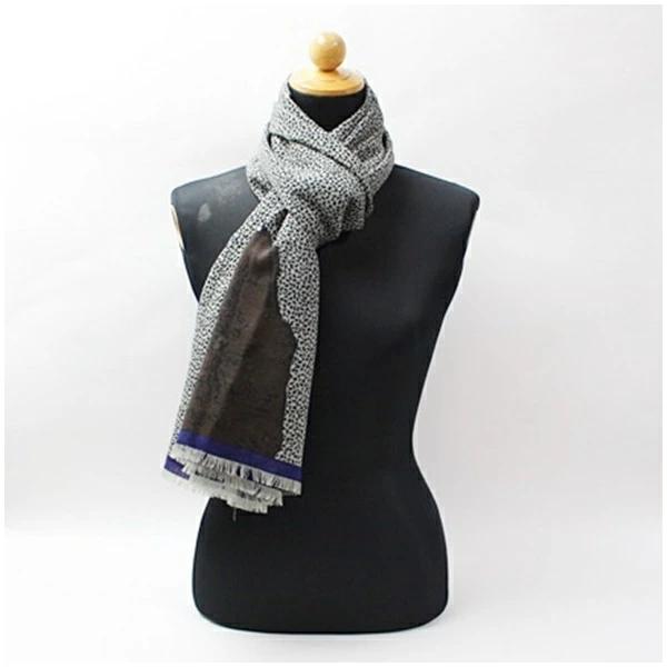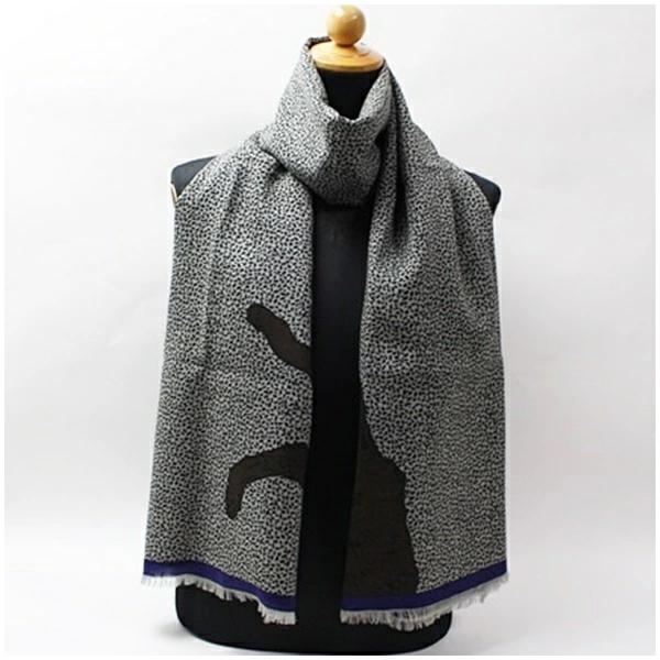 商品名クリッツァ ウール 大判 長方形ストール グレー× ブラック×ネイビー アニマル柄 中古 Bランク KRIZIA