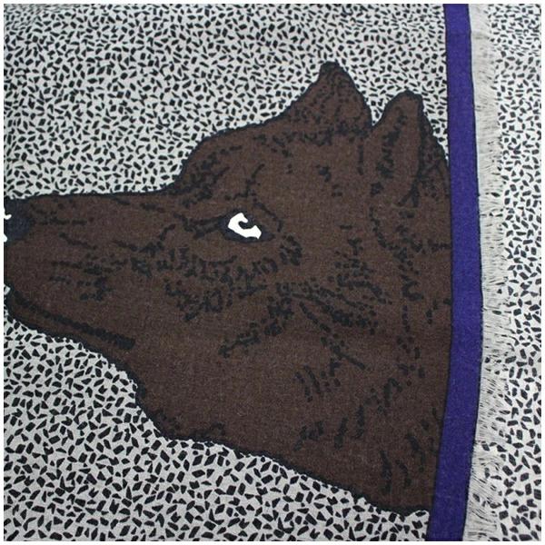 KRIZIA Wool Large Rectangular Stole in Gray, Black, and Navy with Animal Print, Pre-owned, Condition: B, KRIZIA | Women's, Cleaned