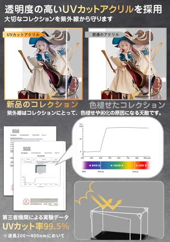 ?【高強度連結構造】次世代フィギュアケースの登場です!衝撃や揺れでも崩れない三角コネクタ構造により圧倒的な堅牢性を実現。大切なコレクションをしっかり守ります。【意匠登録済】※意匠登録第1174680号 ?【マグネット付きの扉】強力マグネット付きの前扉は最大270度まで開くことができます。開閉が簡単に行えるのでコレクションの入れ替えやメンテナンスも簡単。 ?【UVカット99.5%】フィギュアの見た目を損ない厚さ2.8mm UVカットアクリル素材を使用。日焼けによる変色、劣化、色褪せを防ぎ、大切なコレクションを紫外線によるダメージから守ります。※第三者機関にて試験済み ?【組立簡単】アクリル板には剥がしやすい保護フィルムを採用、更にフィルム除去ツール付き。工具不要でピンを押すだけの組立て。予備用のピンをご用意しております、組み立ても分解も楽チン! ?【日本語アフターサービス・品質保証】厳密な品質管理のもとで製造されるKUKER製品は、ご注文日より365日間メーカーサポートが付き。万が一、商品に破損等の問題がございましたら、商品レビューをする前に弊社にご連絡ください、迅速に納得の頂ける対応をさせて頂くことを約束します。