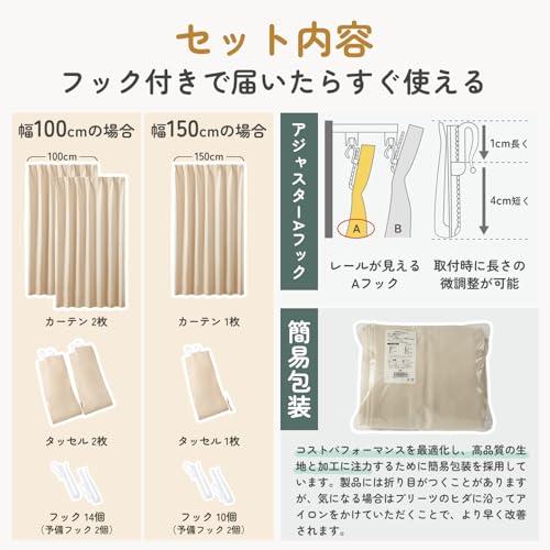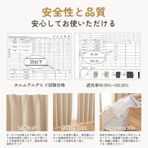 Product handling Notes: Please remove the hook and wash. Wash with a laundry bag. There is a possibility of slight fading or color transfer when washing, so please wash it separately. Iron on medium temperature and use a warm cloth. Do not bleach or tumble dry. Kumori Quality Assurance If you have any defects (such as initial defects), please feel free to contact our shop ([email protected]). (First-class blackout) The warp thread is made of full-dull yarn that is hard to see through, and the weft is made of black thread, and the density of the weft has increased light shielding properties, resulting in 99.99% blackout effect. Blocks out most of the outside light so you can rest comfortably no matter how long it is day or night. Recommended for those who value simplicity and functionality. ※First-class blackout does not completely block light. If you are concerned about light leakage, we recommend darker colors with high light blocking effect Thermal Insulation: The high-density woven fabric reduces sudden changes in indoor temperature. In the summer, it blocks hot air and improves cooling efficiency. Keep warm air out in winter and increase your heating efficiency by keeping warm air out of the room. It also helps to save on energy bills (Comes in a set) Comes with 2 curtain panels with 14 adjuster A hooks (+2 extra hooks) and 2 tassels for easy use. We use simple packaging to optimize the cost performance and focus on high quality fabrics and processing. If you are concerned about the creases, please iron it along the pleats for faster improvement Product Specifications: Composition: 100% polyester fabric for a silky soft and matte texture. Features: Light shielding grade 1 / Thermal insulation / Washable / Memory shape processing. Sewing: Uses 1.5 times pleats / 2 pieces, and if you use 1.5 times the width of the curtain to achieve a better airtight seal, it improves light blocking and heat retention. Memory foam processing: The curtain is corrugated to maintain its shape for a long time [Caution] KUMORI curtains are designed domestically in Japan and overseas factories have thoroughly controlled Japanese standards for quality assurance, so you can buy with confidence. The color of the product may differ slightly from the actual product depending on your monitor settings. ※In the event that the product is defective, please contact us within 90 days of receiving the product and we will accept returns and exchanges. If you have any questions, please feel free to contact us at [email protected] (#lf)(#lf)(#lf)商品購入前に、ストア紹介ページをご確認ください。