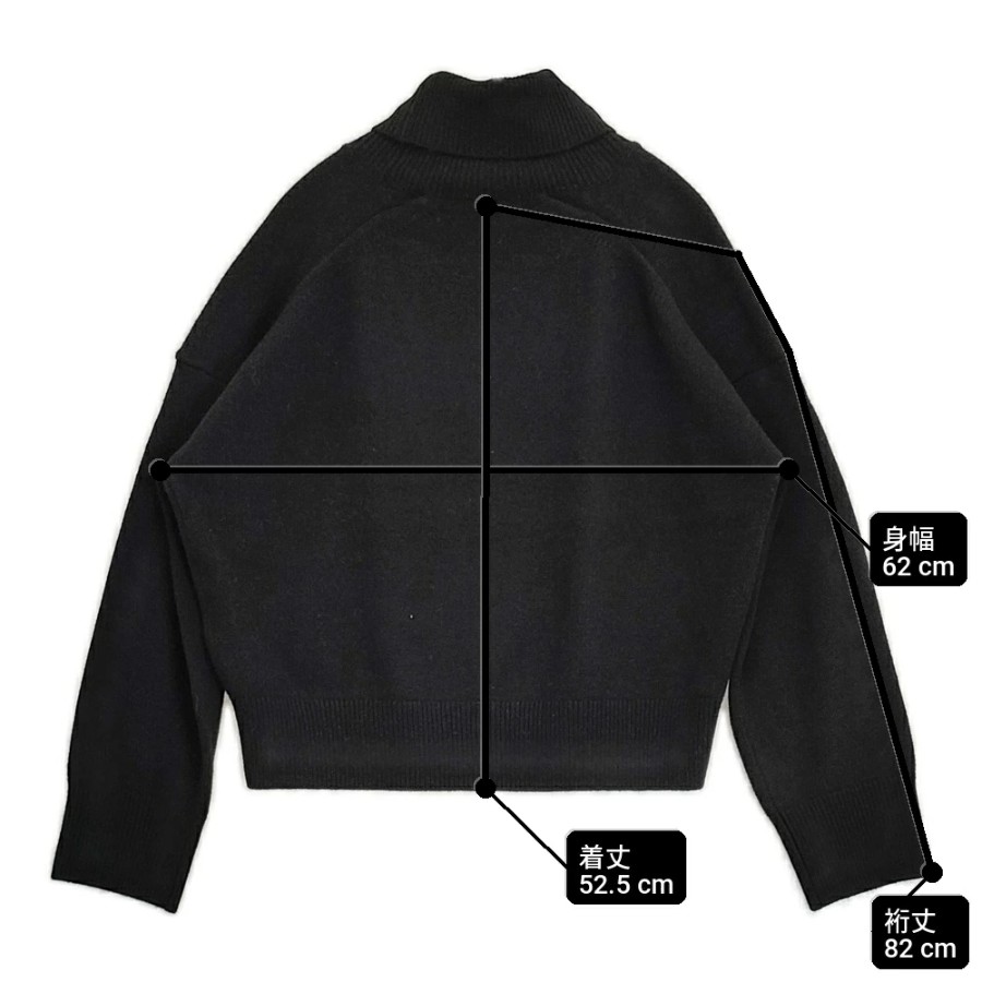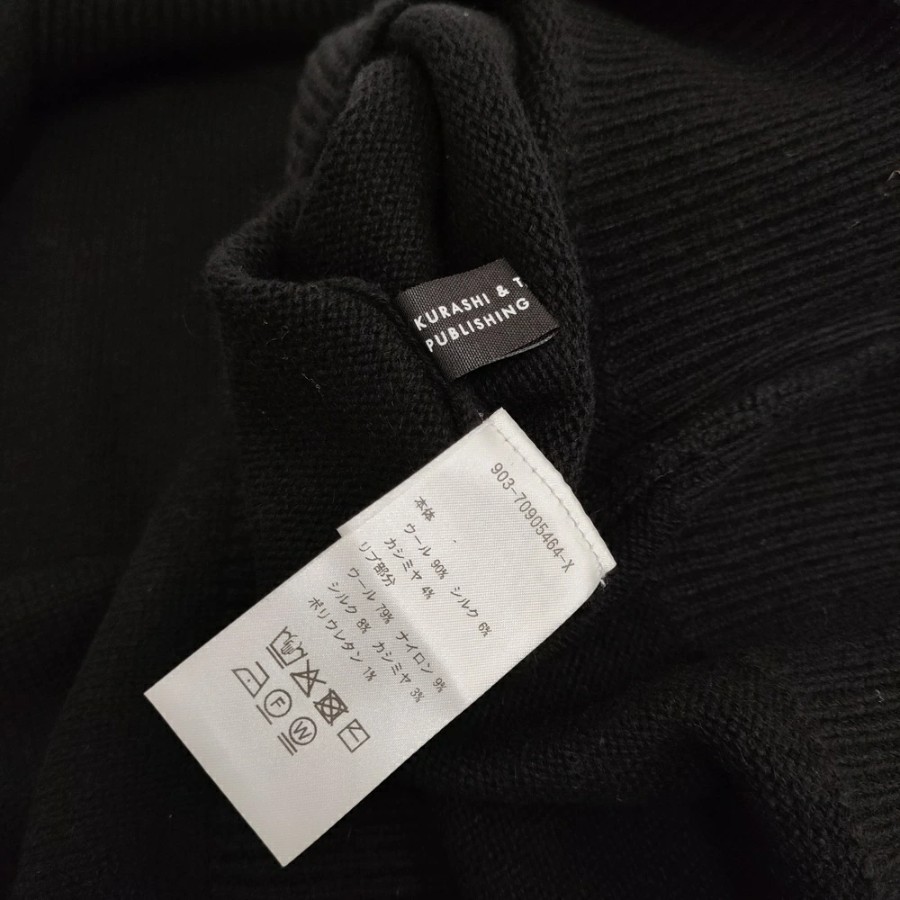 | 品質表示 | 本体:ウール90%、 シルク6% 、カシミヤ4% リブ部分: ウール79%、 ナイロン9%、 シルク8% 、カシミヤ3%、 ポリウレタン1% |