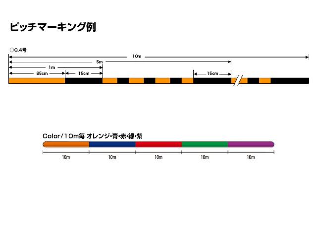 ■標準直径:0.104mm■最大強力:9.1lb./4.1kg■平均強力:7.4lb./3.4kg■ラインカラー:10m毎 オレンジ・青・赤・緑・紫