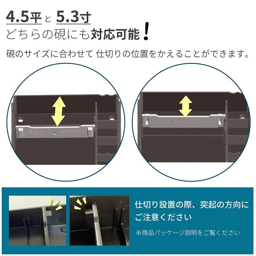 ケースの特長・通気性抜群の空気穴付き。・ロック機能でカチッとふたがしっかりしまります。・ケース底に滑り止めのゴム付き。蓋を後ろに重ねても機能します。・硯のサイズに合わせて仕切りの位置を変えることができます。(4.5平、5.3寸、どちらの硯にも対応可能)