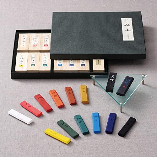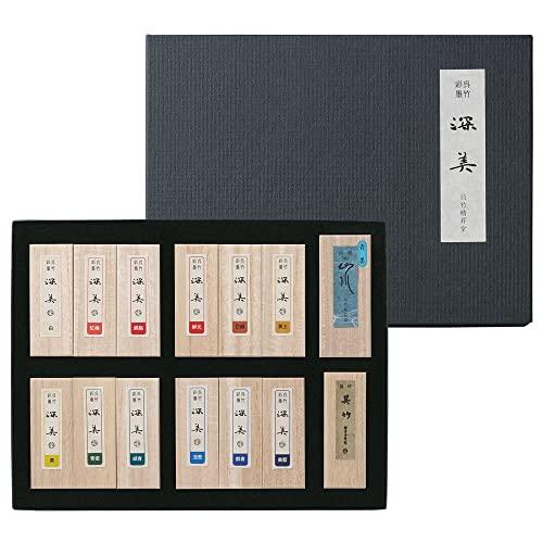 彩墨 深美12色と書画用の信印呉竹、画墨 梅印山水をセットにしました。日本画・水墨画・水彩画・墨彩画など、幅広くお使いいただけます。呉竹独自の製法により、日本画のもつ鮮やかで美しい色合い、運筆の妙味を引き出した色彩墨です。濃淡、にじみ、かすれ、色のまぜ合わせなど、色の含ませ方と運筆で、さまざまな表現ができます。
