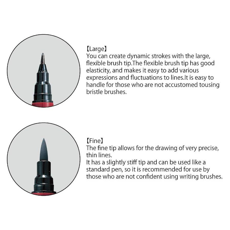●硬筆/軟筆ツインタイプ。●柔らかな書き味の太字+繊細なタッチの細字で一本二役。●筆記可能距離:(軟筆側)200~300m、(硬筆側)650~750m
