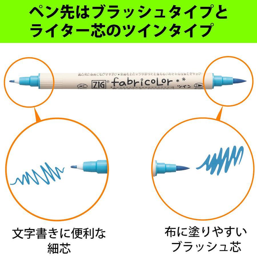 商品名:呉竹 水性ペン 布用 布書き ZIG ファブリカラー ツイン 12色 TC-4000A/12VB