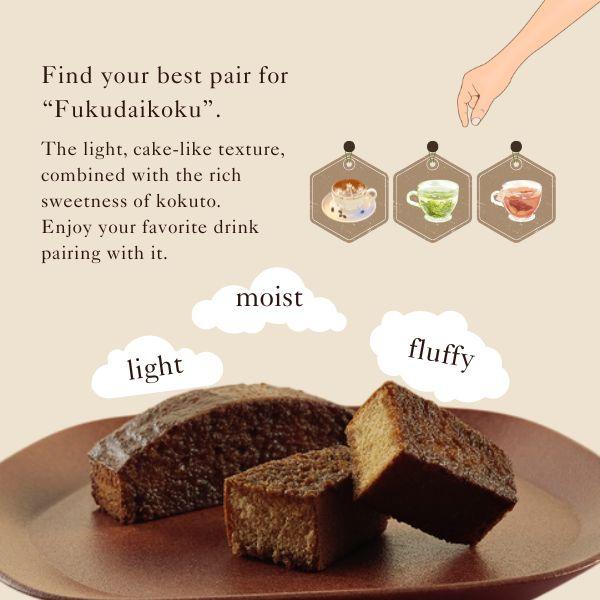 ◆Soft kurobo "Fukudaikoku"◆Fukudaikoku, the new textured kurobo.You will love the soft and moist texture that goes well with matcha green tea, coffee and even with English tea.Our house-blended brown sugar syrup delivers a sophisticated and clean taste to our Fukudaikoku.Loved by locals of all ages.