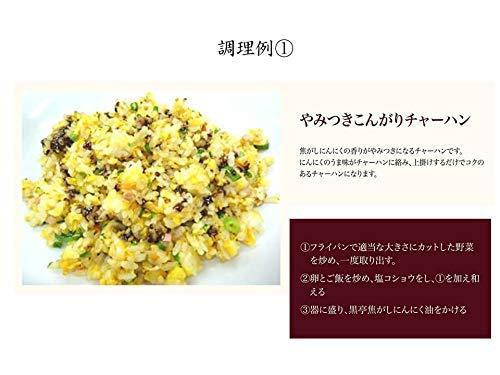 【熊本の人気調味料】黒亭の焦がしにんにく油は、コクと香ばしさをスープにプラスする秘伝の調味油です。世間ではよく「マー油」と呼ばれていますが、黒亭では「焦がしにんにく油」と呼んでいます。お店ではにんにくを細かく砕き、油でじっくり揚げ、時間をかけて色づけしています。実は、「焦がしにんにく油」のこのコクと香ばしさは、ラーメンはもちろん、いつものお料理にプラスすると料理に独特の香ばしさをプラスします。アレンジ次第でお店で味わうような料理に変化します。【内容量】135g【原材料名】なたね油(国内製造)、香味食用油、豚脂、にんにく、大豆粉末、食用精製加工油脂、エシャロット/着色料(カラメル、炭末)、香辛料抽出物、酸化防止剤(ビタミンE)、(一部に豚肉・大豆を含む)独特の香ばしさと苦みがお料理を一層引き立てます。 たっぷり嬉しい135gのボトル入り。【重要】メーカーによる商品リニューアルに伴いパッケージ(内容量も含む)変更が行われた場合、新パッケージでお届け致します事ご了承願います。