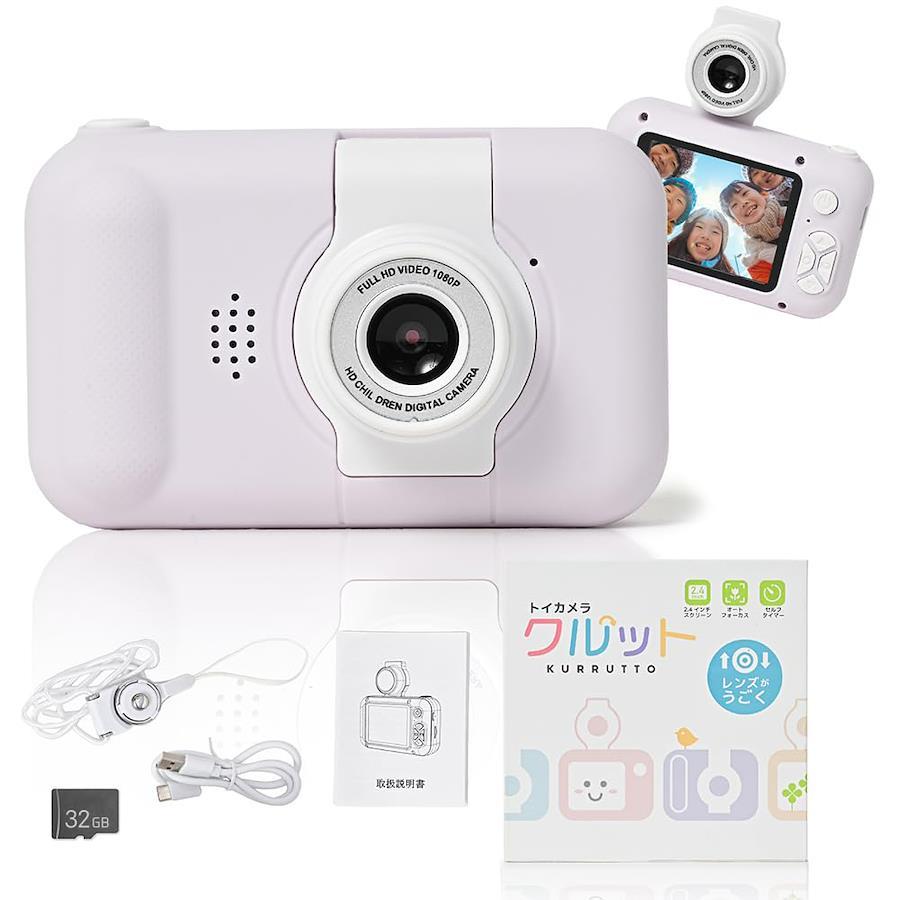 クルット トイカメラ キッズカメラ 日本企業 32GB カード付 全5色 動画機能 音楽プレーヤー ゲーム機能 日本語 取扱説明書付き 男の子 女の子 誕生日 クリスマス プレゼント ギフト (ペールパープル)