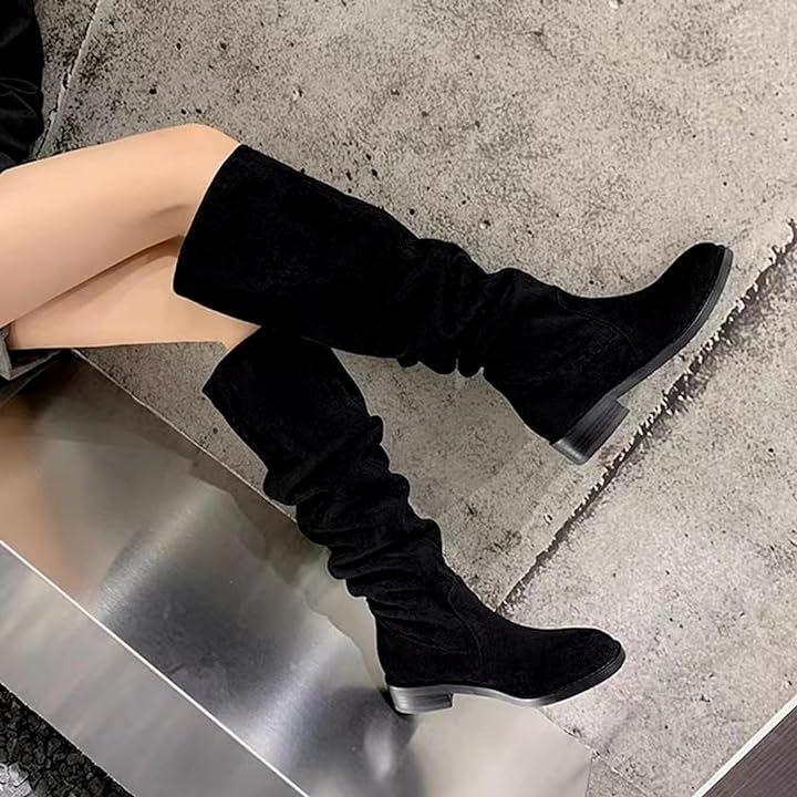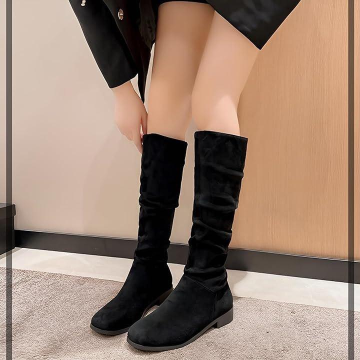 ・スエード調のくしゅくしゅしたデザインは女性らしい印象と脚をスッキリ、きれいに魅せてくれる。 ローヒールなので、しっかり安定感あって履き心地も抜群です。