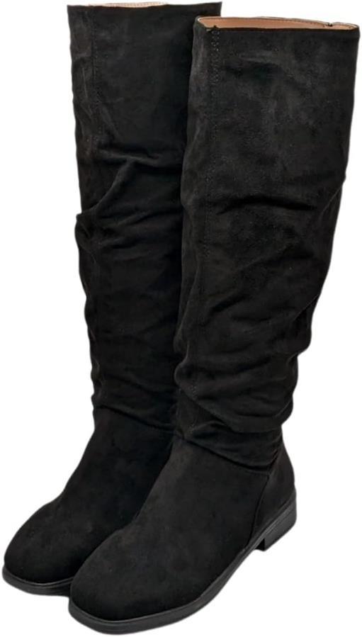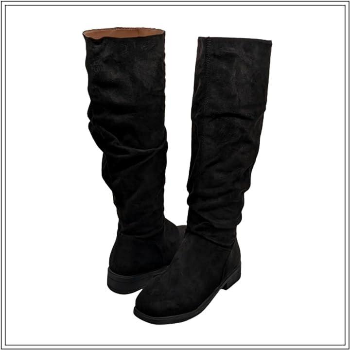 ・スエード調のくしゅくしゅしたデザインは女性らしい印象と脚をスッキリ、きれいに魅せてくれる。 ローヒールなので、しっかり安定感あって履き心地も抜群です。