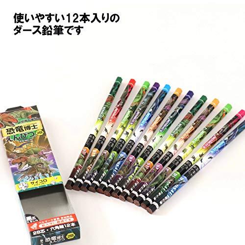 恐竜が学べるえんぴつ!恐竜の生態が学べる(分類、体長、食性)サイコロデザイン付。2B黒芯、六角軸。12本入り、名前欄付。