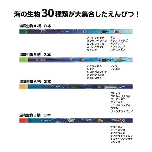 人気の海洋生物、海洋生物が学べる鉛筆<br>生物写真・イラスト、生物名、名前欄付き<br>2B黒芯、六角軸<br>12本入
