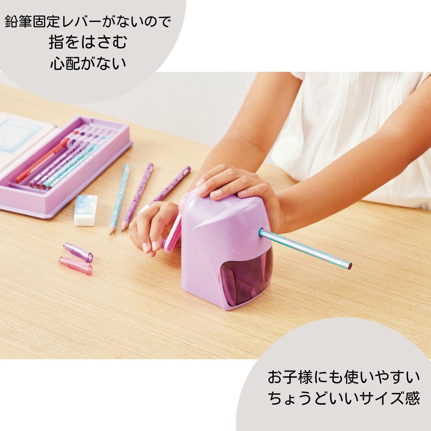 鉛筆の固定レバーが無い安全タイプの卓上鉛筆削り!