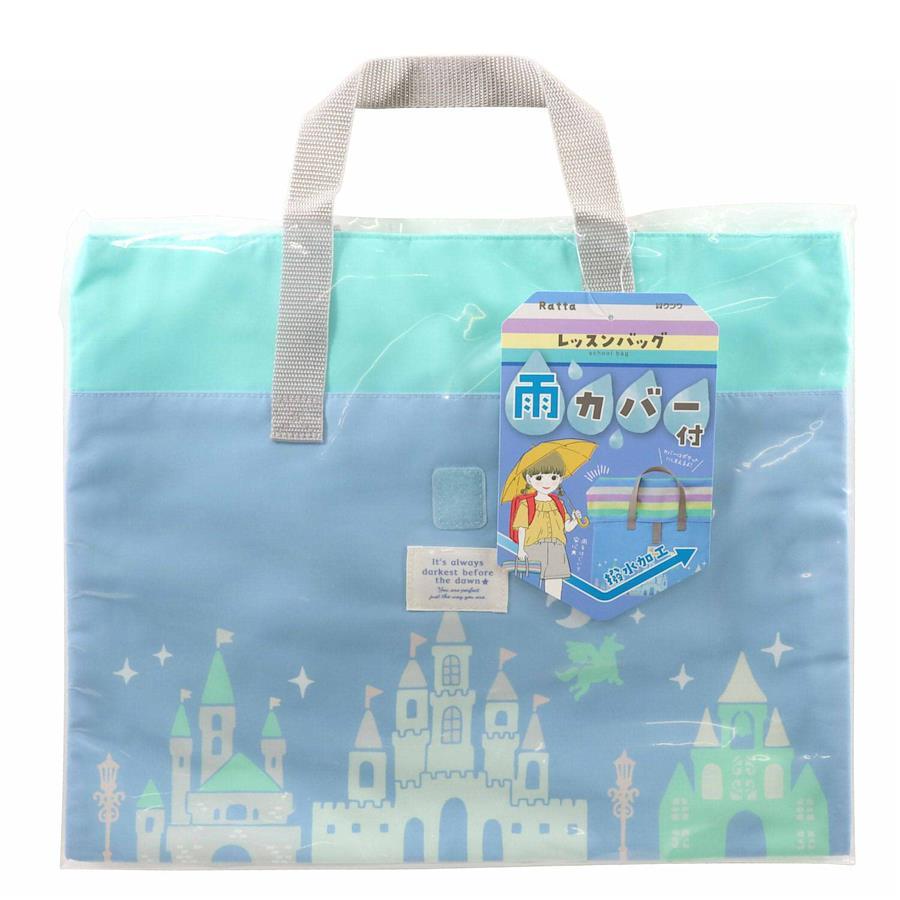 雨の日が楽しくなる、カバー付きレッスンバッグ♪撥水加工生地を使用しているので雨をはじいて荷物を守る! 口全体を覆えるカバー付き! カバーは側面ポケットに収納できるのでとっさの雨でも対応可能! 6年分のネームタグ付き。年代が上がるごとに新しい欄に記入できる。上書きする必要が無いので汚くならない!
