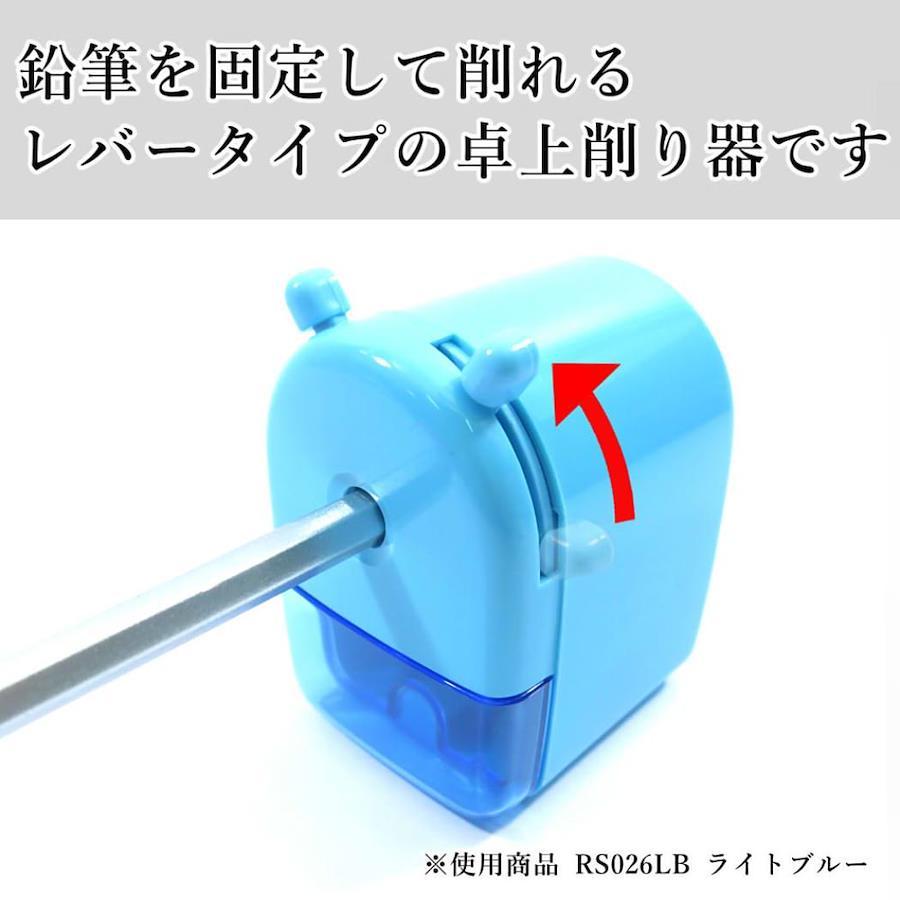 5段階に芯の長さを変えられるミニ卓上鉛筆削りです。削り刃は日本製のものを使用しています。芯詰まりを取り出せる機能つきです。鉛筆を固定できるチャックレバーが付いています。