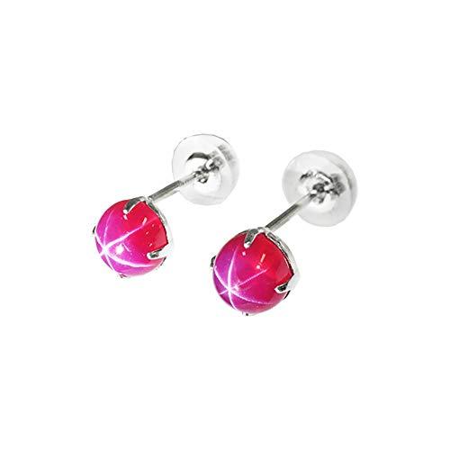 [Kyocera] Earrings, Platinum, Stud, Natural Stone, Cabochon, Star Ruby, July Birthstone, Cresanbel