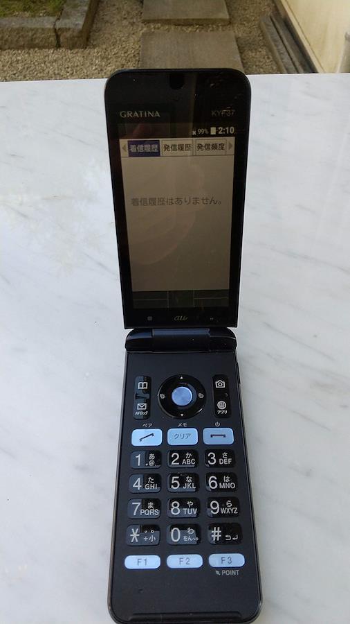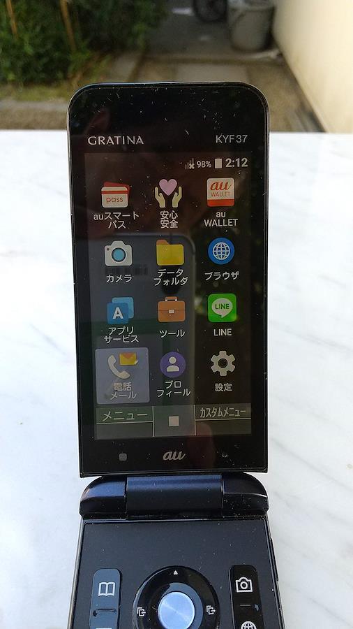 KYOCERA GRATINA KYF37 ネイビーブラック au〔形状〕折りたたみ型 〔ストレージ〕8GB内蔵/microSDHC対応 〔液晶画面サイズ〕3.4インチ液晶 〔解像度〕480x854〔防水機能〕防水機能有り 〔テレビ〕ワンセグ 〔GPS機能〕GPS有り 〔IC機能〕おさいふケータイ〔カメラ〕800万画素カメラ 〔高速通信〕4G 〔無線LAN〕WiFi(b/g/n) 〔Bluetooth〕Bluetooth4.1 〔SIMカードスロット〕ナノSIM
