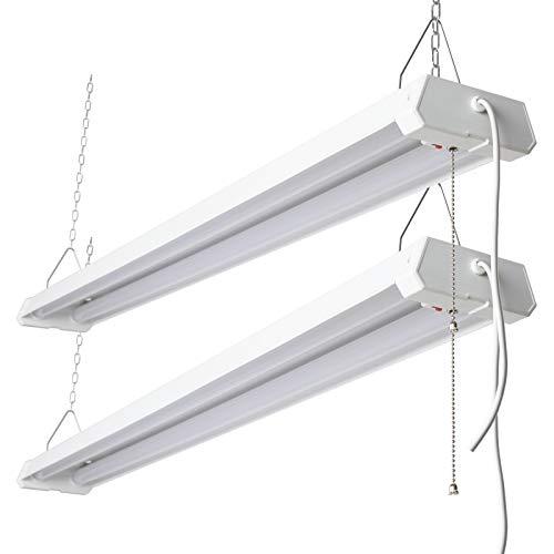 【製品仕様】「2台セット」一体型調色可LED蛍光灯器具・コンセントとチェーン吊タイプ・色温度:3000K-4500K-6000K(3段調色)・消費電力:36W・明るさ:4000lm・ACプラグ付き電源コード(約160cm)は本体直出し。60cmの長さの吊り下げチェーンが2本付属しており、天井から下げて設置できます。スイッチチェーンの長さは約25cmです。【LED省エネ&3段階調色】本製品は3段階調色可能です。光色は暖色3000K、自然色4500K、白色6000Kから調節でき、雰囲気に合わせて自由に選択できます。36Wの消費電力で一般形蛍光灯40W*2灯の明るさを提供でき、省エネ性に優れています。【即時点灯&手元点灯】LED一体式蛍光灯として、点灯遅延なし。スイッチチェーン付きなので、ライトのオンオフは手元で済ませます。【工事不要】ACコンセントから給電できる2灯式。ACコンセントに差込むだけで通電できるので、配線工事と難しい電気工事が不要なので、取付や取替えに手間かかりません。様々な用途に利用できます。最大で8台まで連結して使用することも可能です。【シーリング&つり下げ】固定方法はつり下げ式とシーリング式の2種類あります。商品の陳列用、病院、学校、オフィス、工場な色々なシーンに適用します。