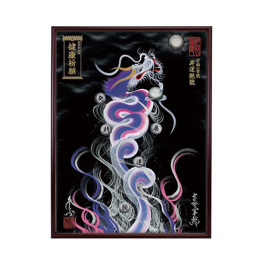 【商品の特徴】・京都一筆龍描画の種類/色彩は【26種】よりお選びいただけます<昇運龍14種(双龍5種/1体龍9種)> <守護龍10種(双龍2種/1体龍8種)> <縁結び龍2種(双龍2種)>・『京都一筆龍の御加護/御利益の象徴=胴体部分を一切途切れさせず一筆で描く動画』のQRコード印字ステッカー(2色/4サイズ)を同封お納めいたしております・描画に記載可能なお願い事は6種のご祈願内容より御選定いただけます心願成就/事業繁栄/金運上昇/健康祈願/家内安全/良縁成就・国内生産の高級額縁(デッサン額)を使用。額縁の色/機能は7種よりお選びいただけます。・龍の眼に光を宿し生気を吹き込む『龍の瞳(ラインストーン)』加工・京都一筆龍絵師手島啓輔署名、落款入り・御贈答のご利用も多く、懇切丁寧な包装