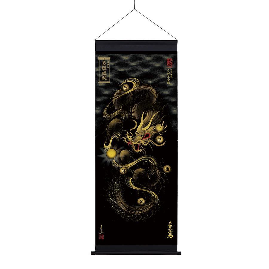 【商品の特徴】・京都一筆龍描画の種類/色彩は【26種】よりお選びいただけます<昇運龍14種(双龍5種/1体龍9種)> <守護龍10種(双龍2種/1体龍8種)> <縁結び龍2種(双龍2種)>・『京都一筆龍の御加護/御利益の象徴=胴体部分を一切途切れさせず一筆で描く動画』のQRコード印字ステッカー(2色/4サイズ)を同封お納めいたしております・描画に記載可能なお願い事は6種のご祈願内容より御選定いただけます心願成就/事業繁栄/金運上昇/健康祈願/家内安全/良縁成就・御札など添付のお祀り用マグネットを使用してお祀り(取り外し/位置変更可能)・発色が良く落ち着いた風合いの防炎スエード生地製(厚み約0.35~ ※官製郵便はがき約1.5枚程度/コピー用紙約4枚分程度)※ スエードは皮革・合成皮革ではなく専用布の名称となります。・吊り下げ用の上下軸棒付き(下部は軸先付き)※軸棒を外して飾られる場合でも、紐や止め具(画鋲、釘、ネジ等)をお使いいただけるハトメ穴付き(表面からは見えません)・丈夫で切れにくくシンプルな風合いの江戸打ち紐付き(黒/白2色)・龍の眼に光を宿し生気を吹き込む『龍の瞳(ラインストーン)』加工・京都一筆龍絵師手島啓輔署名、落款入り・御贈答のご利用も多く、懇切丁寧な包装