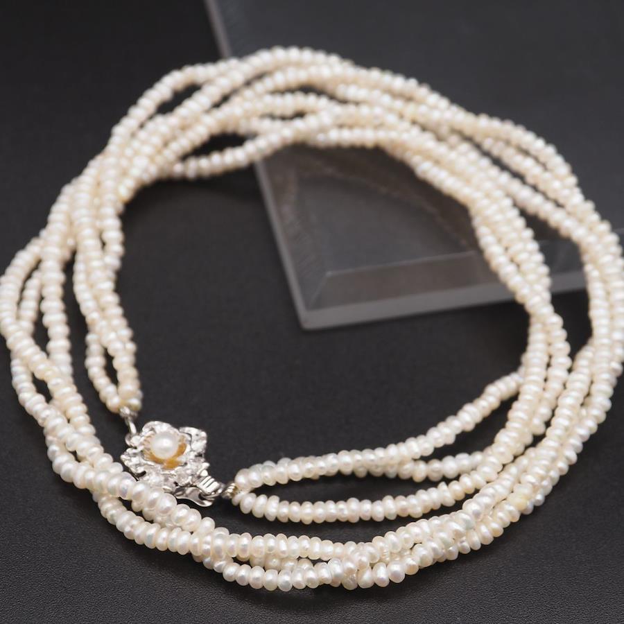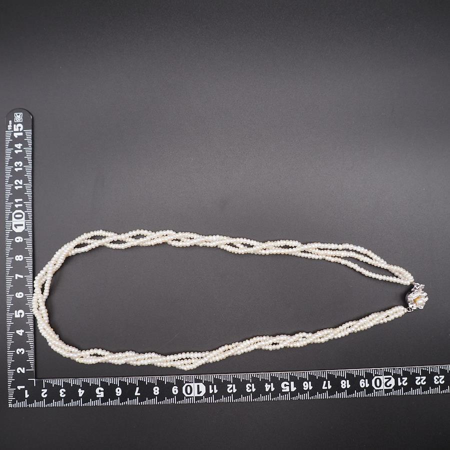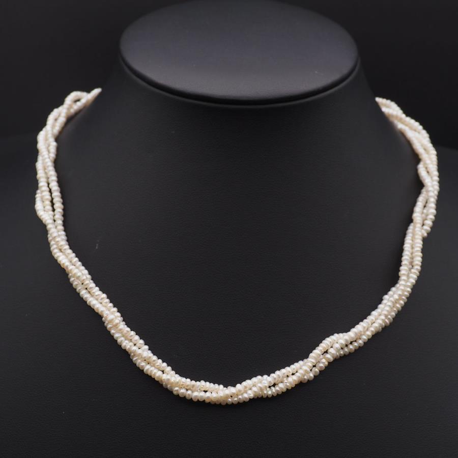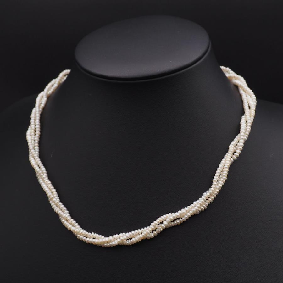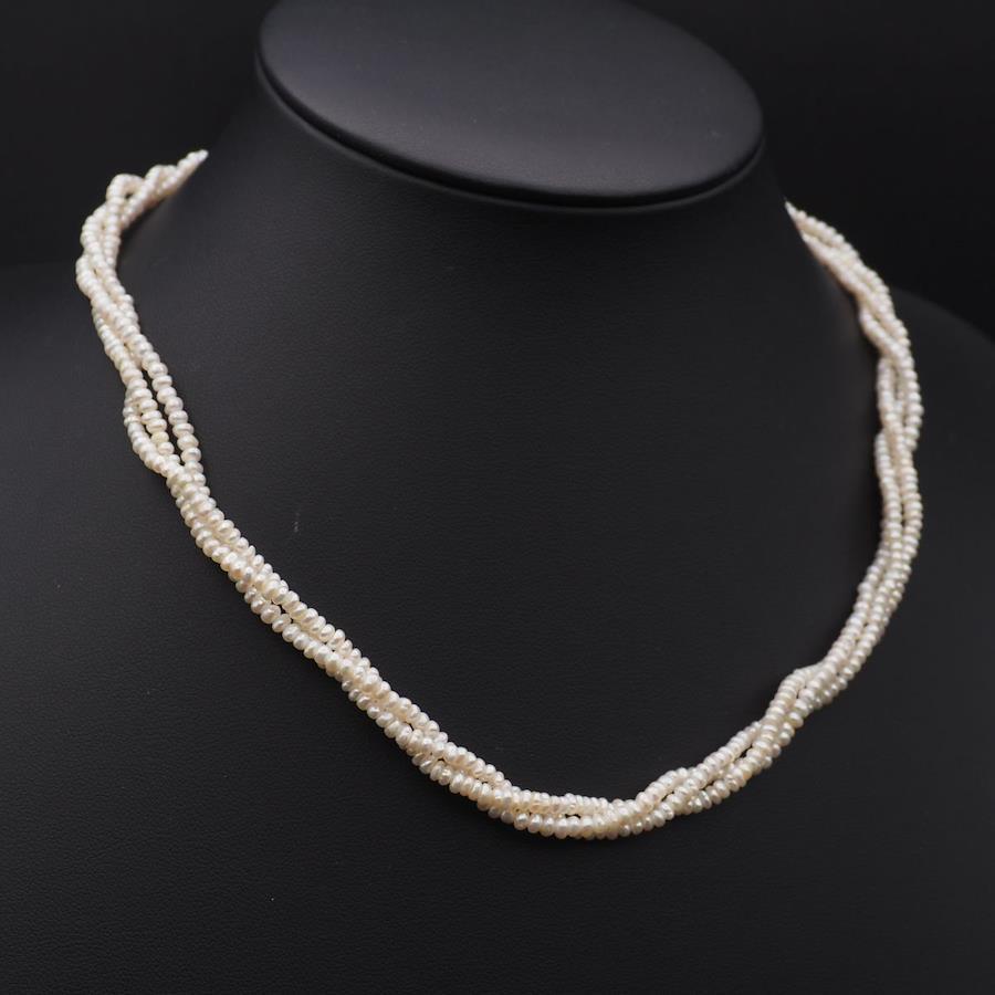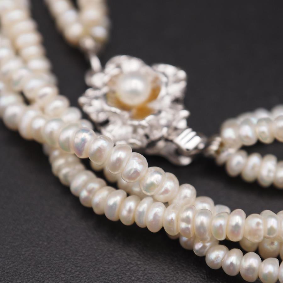 L026 Freshwater Pearl Necklace, Silver Stamp, 3-Strand Design, June Birthstone