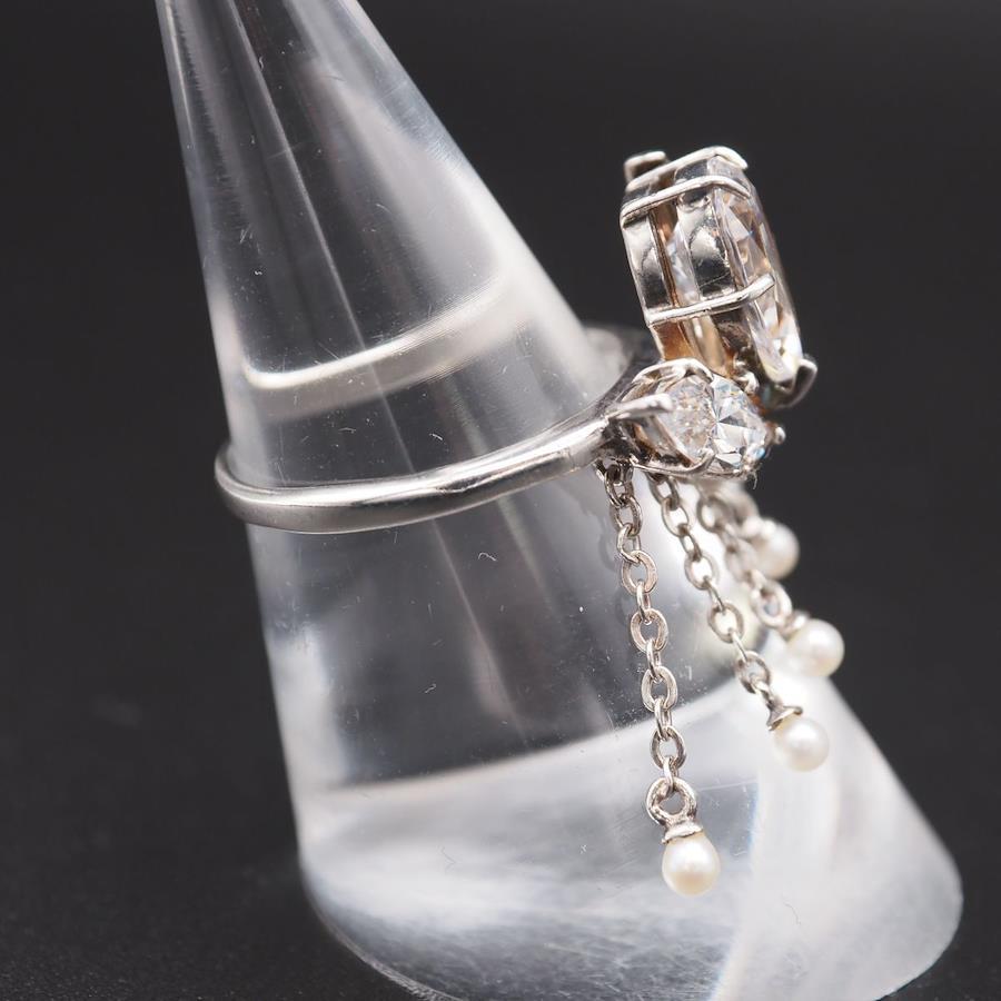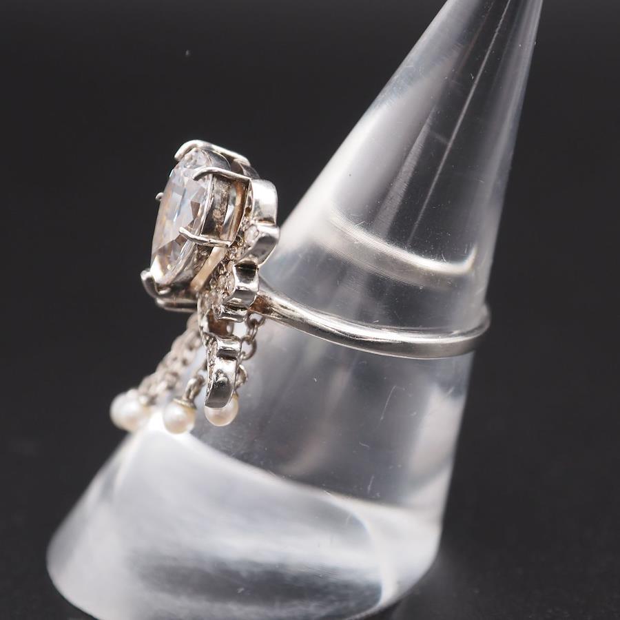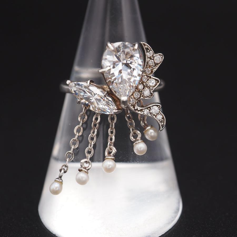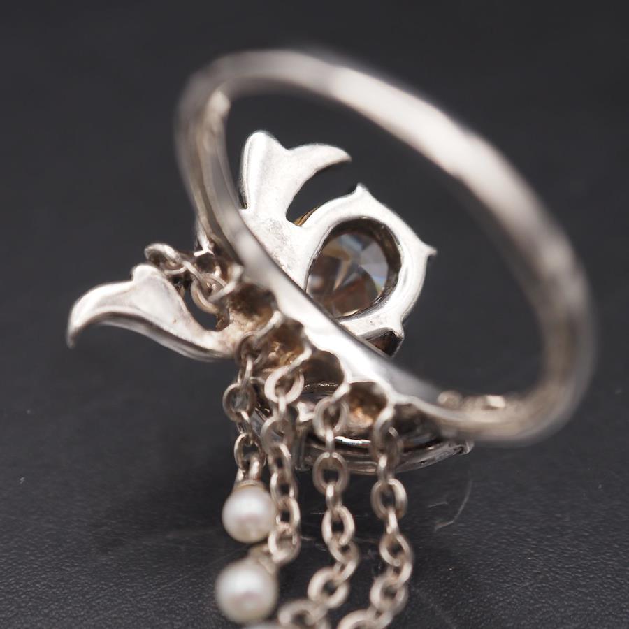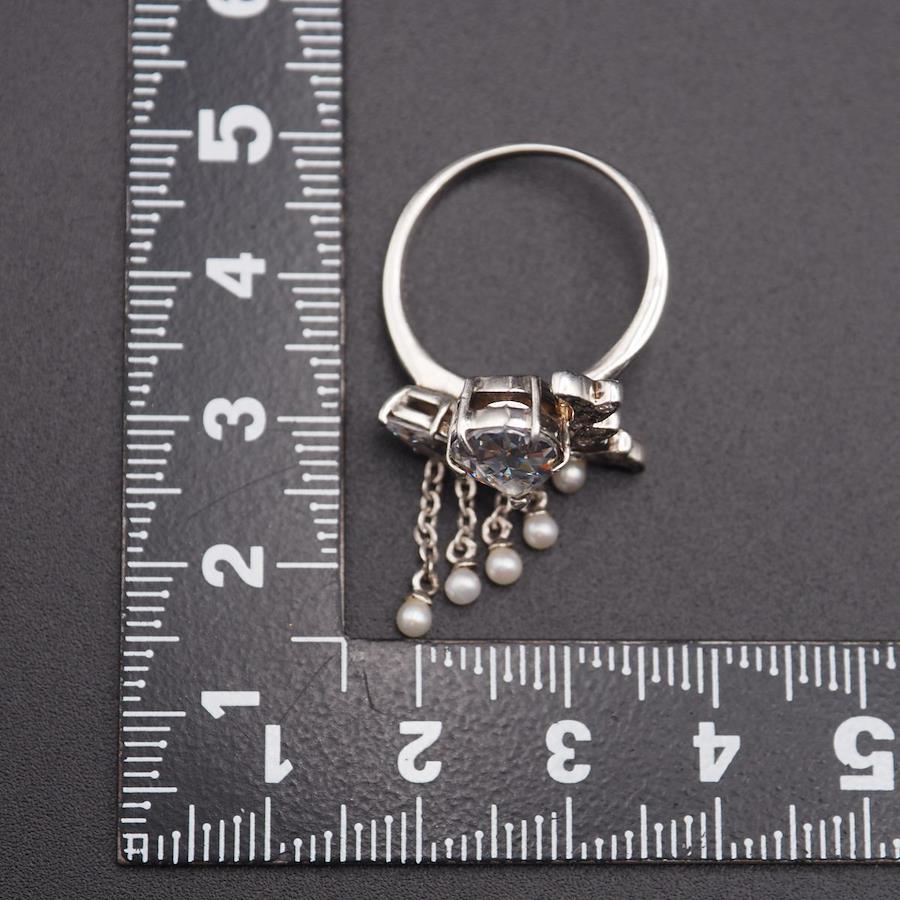 L068 e.m. Diamond-Style Baby Pearl Ring with SILVER Stamp, Silver Design, Size 13
