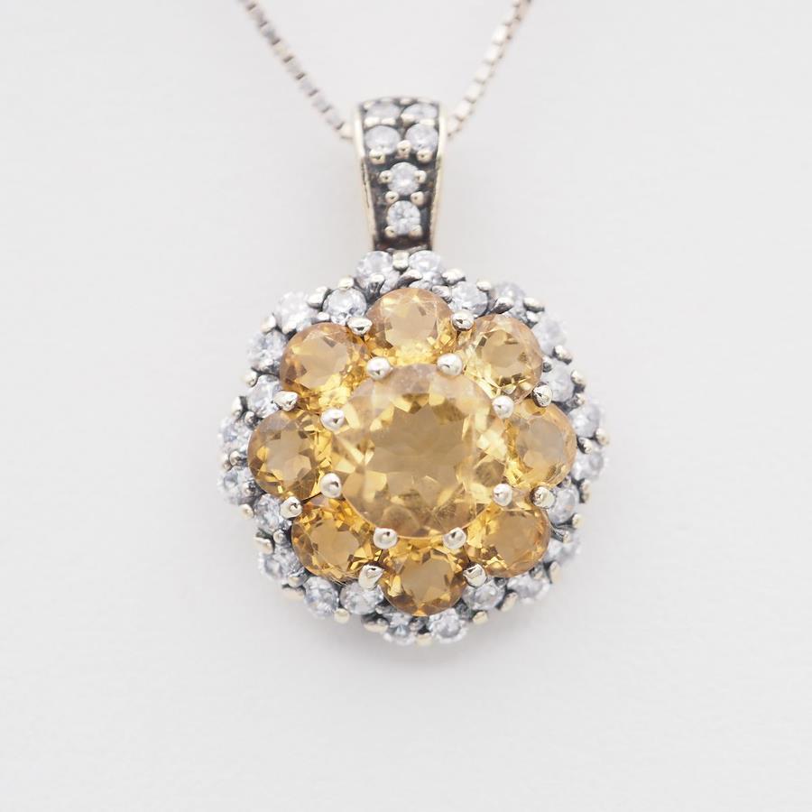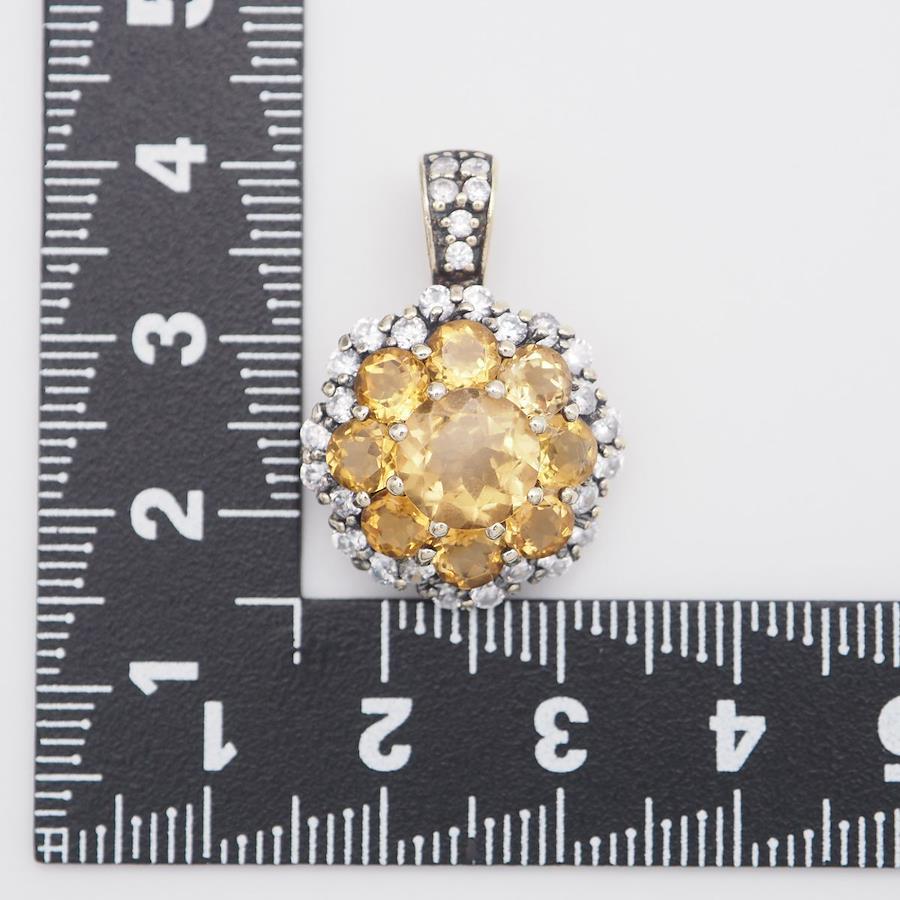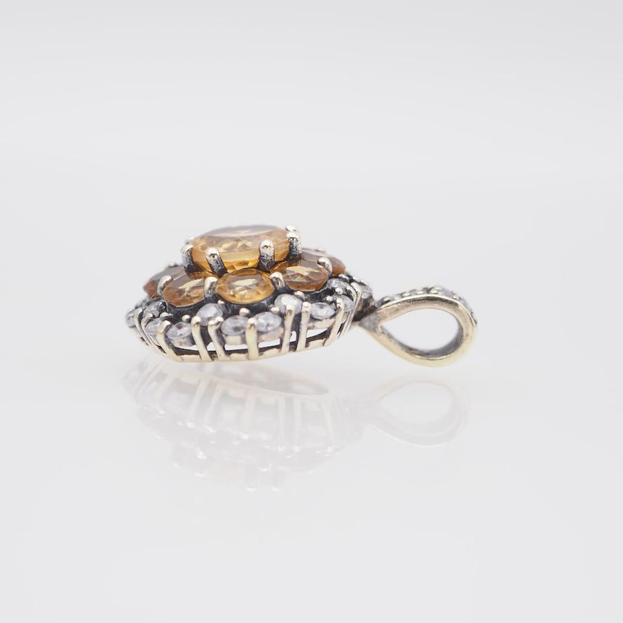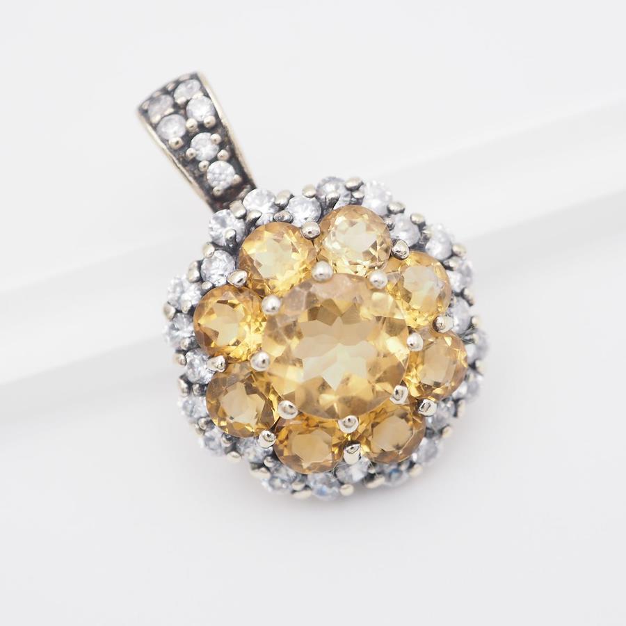 L211 Citrine Diamond-Look Pendant Top, 925 Stamp, Gold Design with Silver Charm Head, October Birthstone