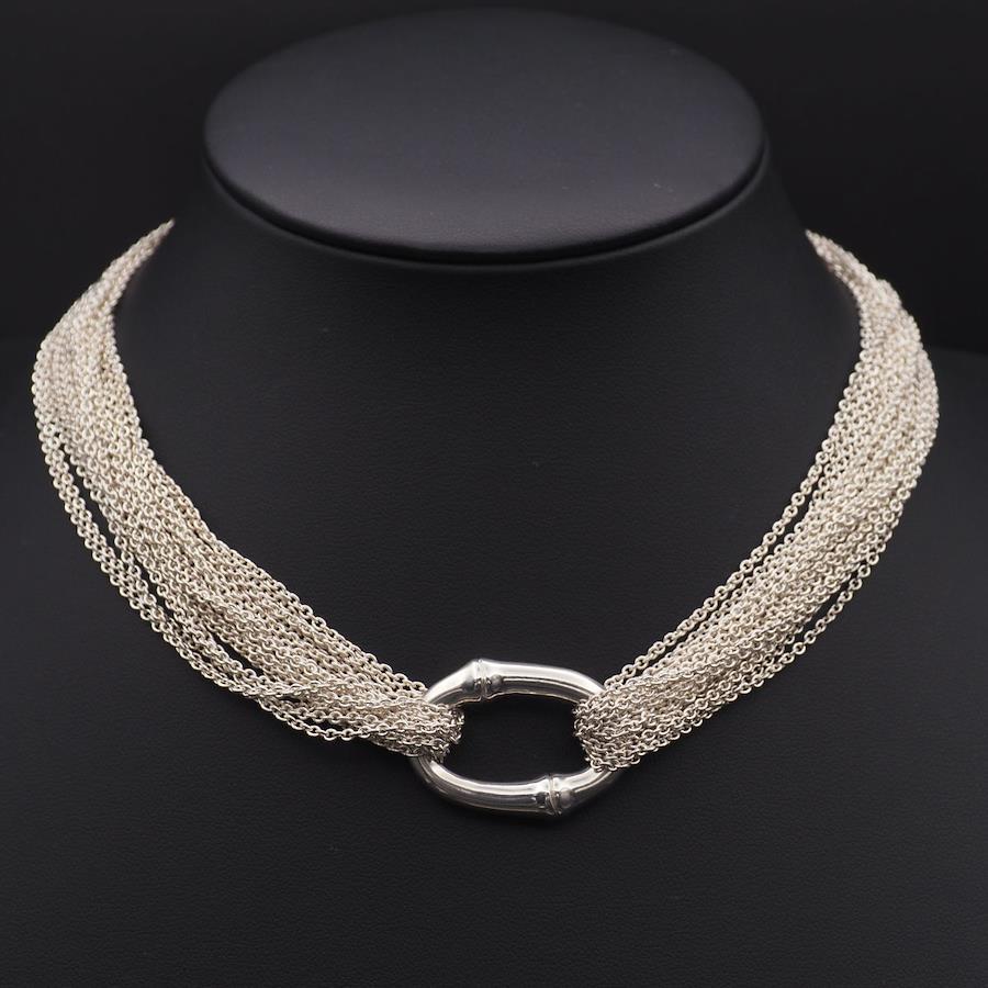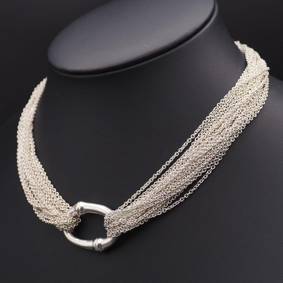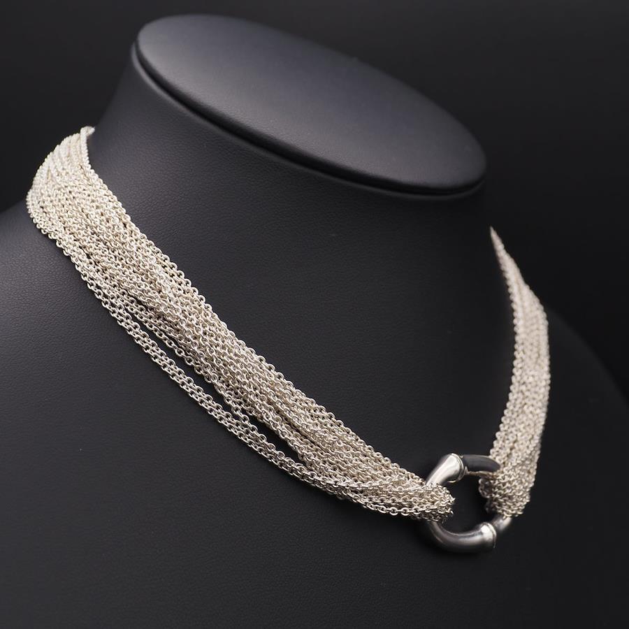 L343 MONET Monet Necklace, 20-Strand Chain Ring Design, Silver, Costume Jewelry