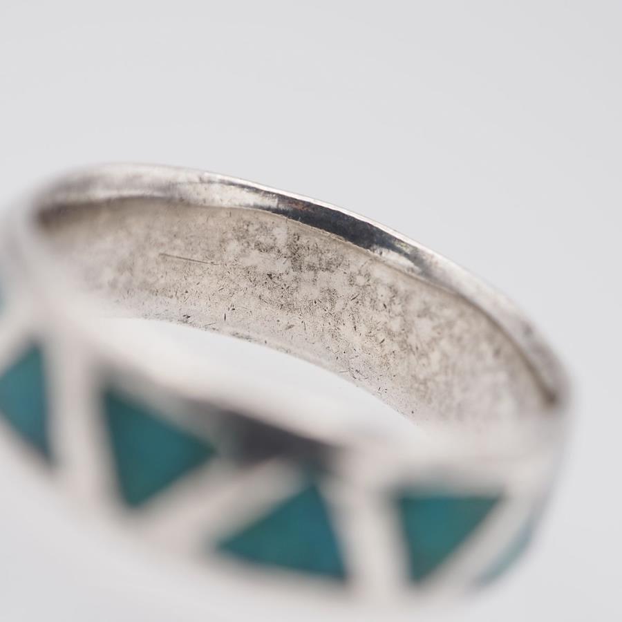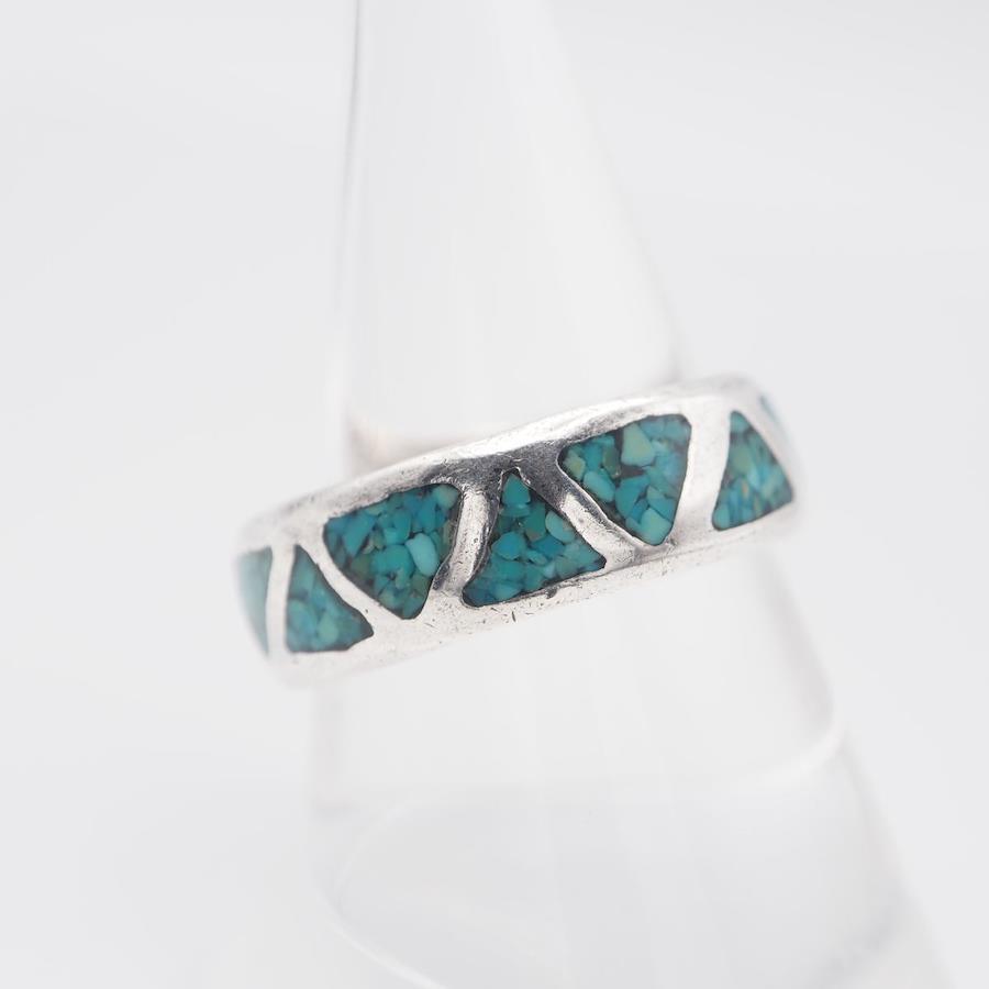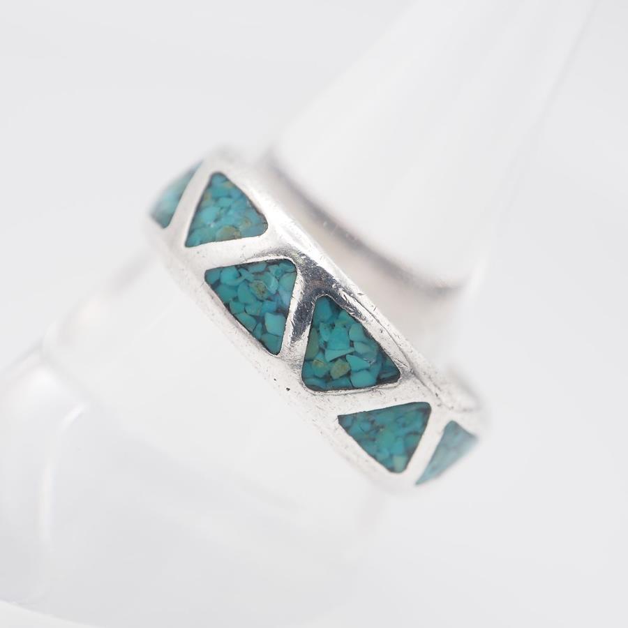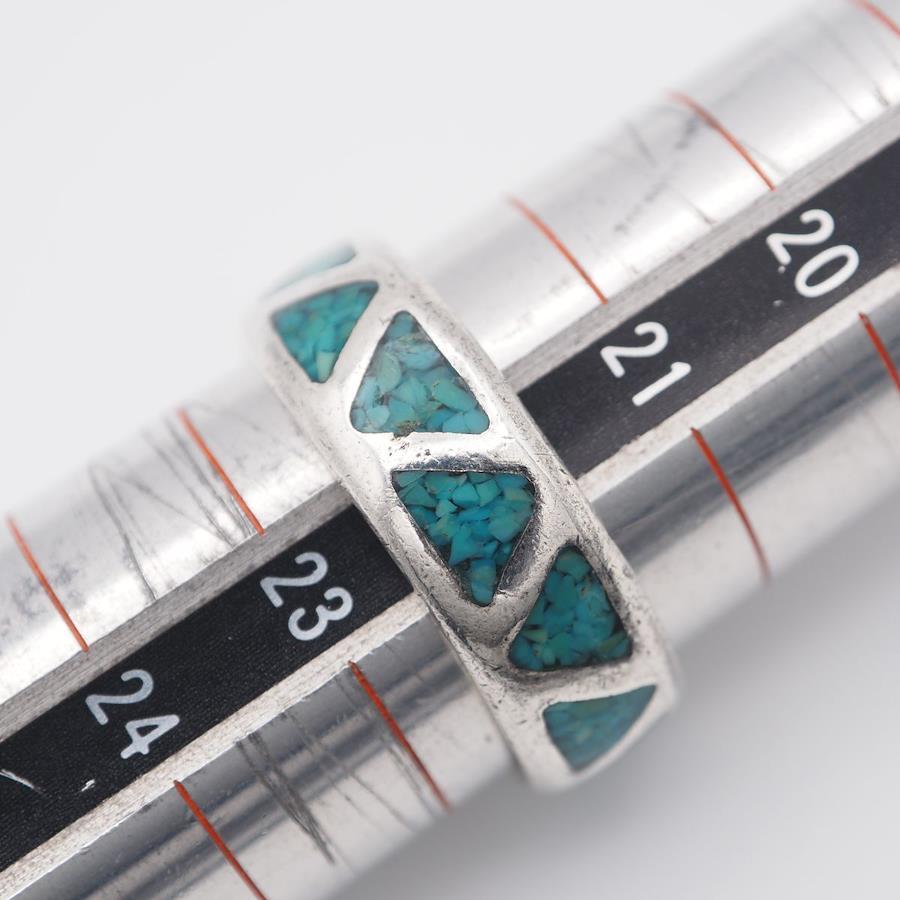 L353 Turquoise-like STER Stamped Ring Inlay Design Silver Vintage Ring Size 22