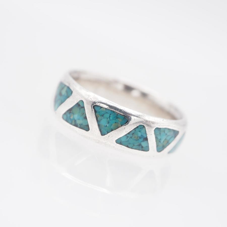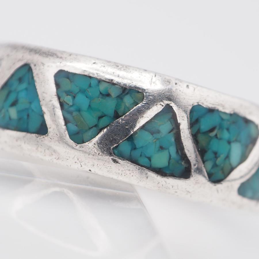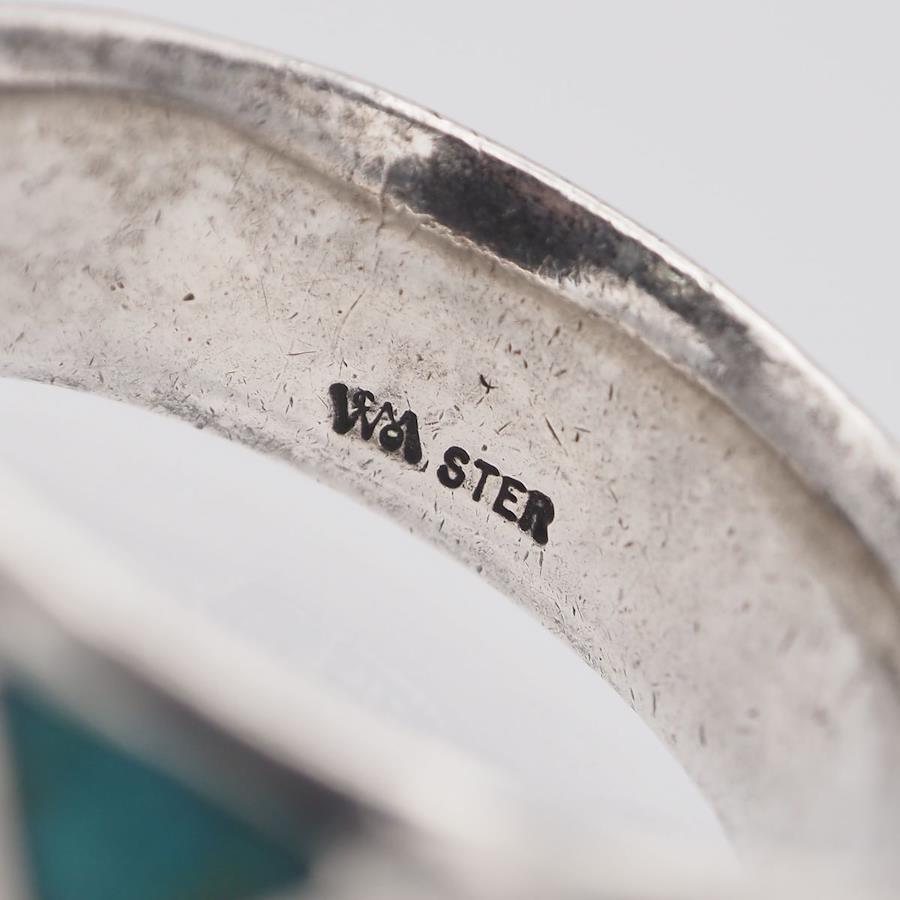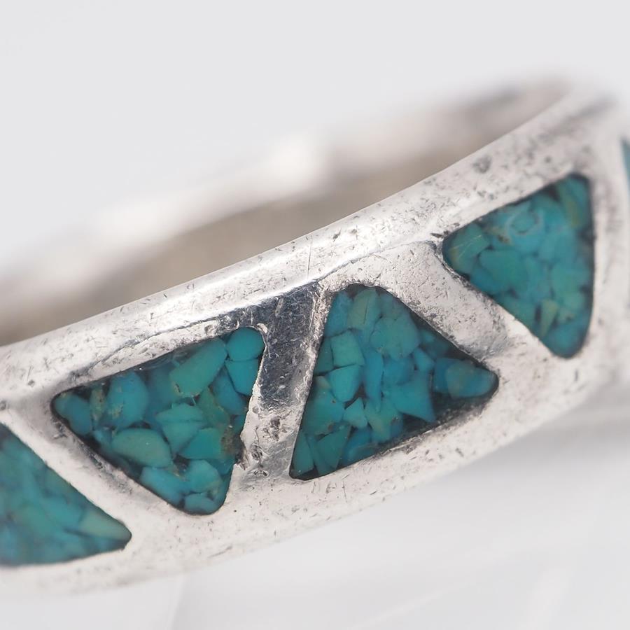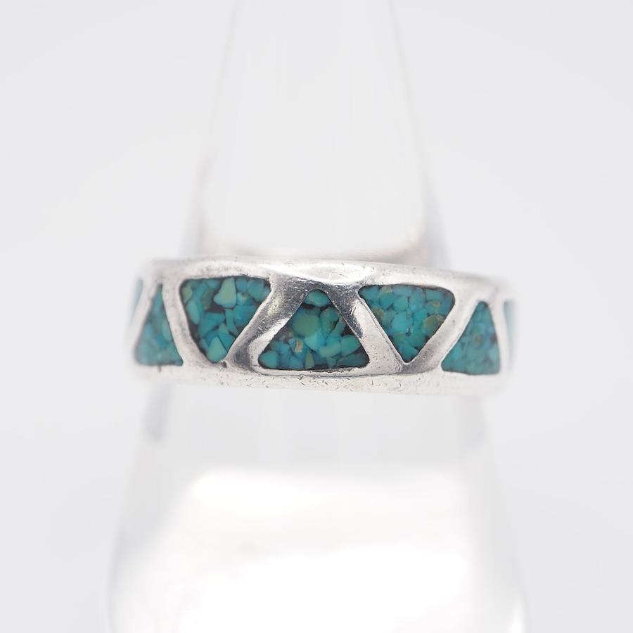 L353 Turquoise-like STER Stamped Ring Inlay Design Silver Vintage Ring Size 22