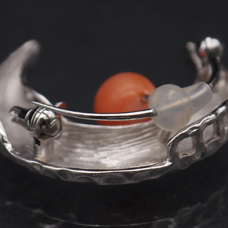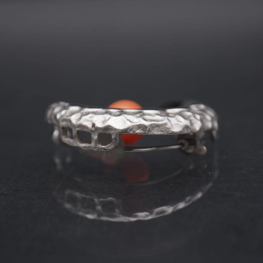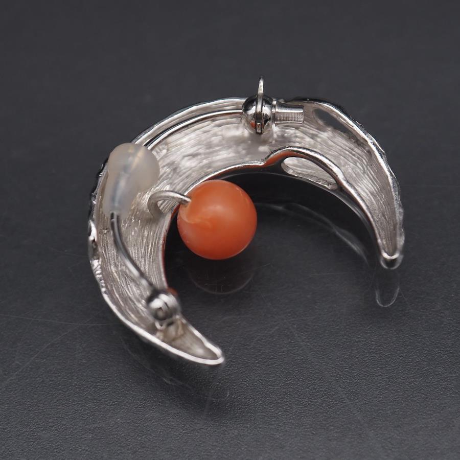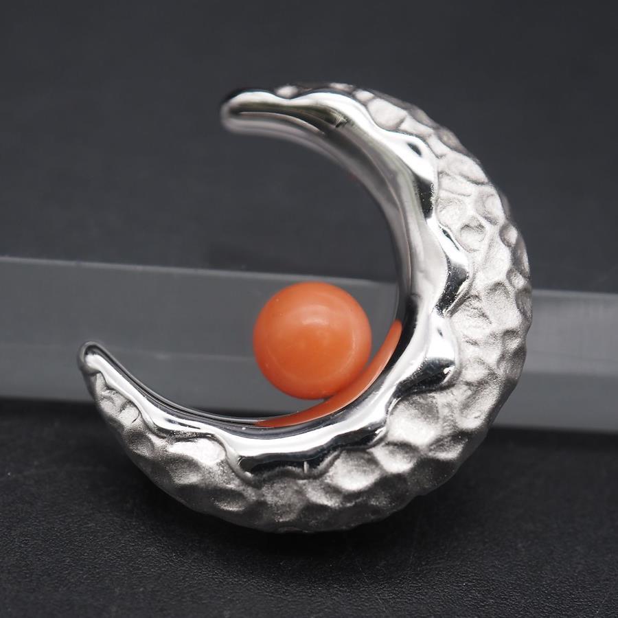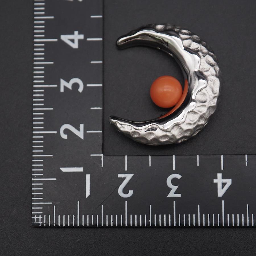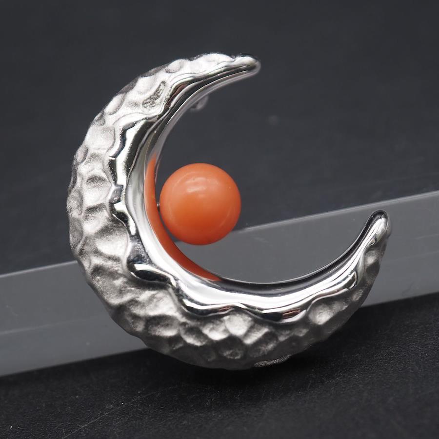 L403 Coral Brooch with Moon and Crescent Design in Silver, March Birthstone
