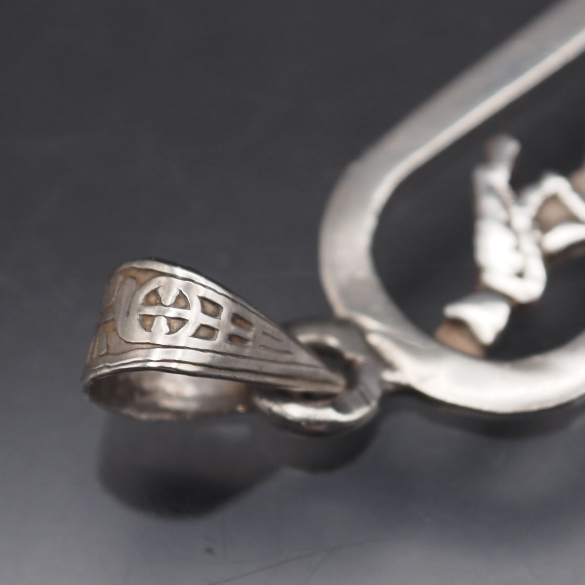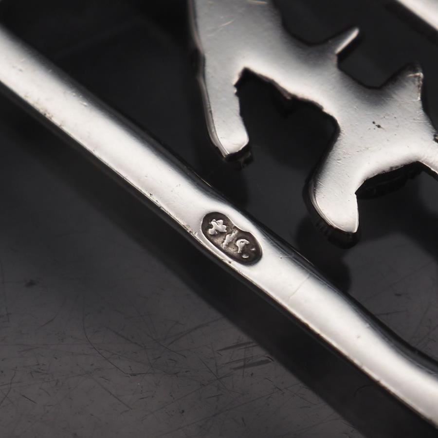 おそらく銀製かと思いますが、刻印が無いため断言できません。画像をたくさん掲載しておりますのでそちらでご確認とご判断をお願いいたします。