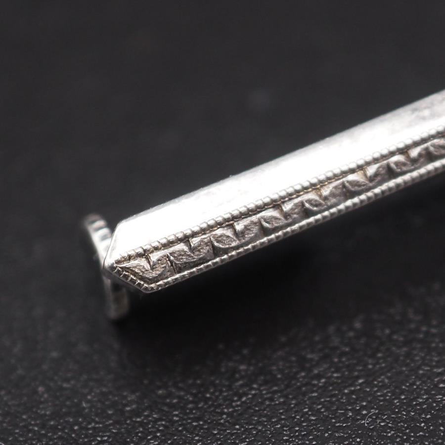 おそらく銀製かと思いますが、刻印が無いため断言できません。画像をたくさん掲載しておりますのでそちらでご確認とご判断をお願いいたします。