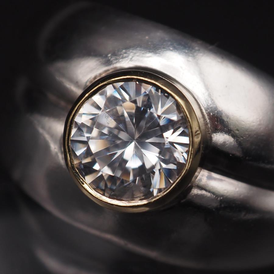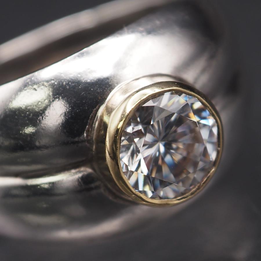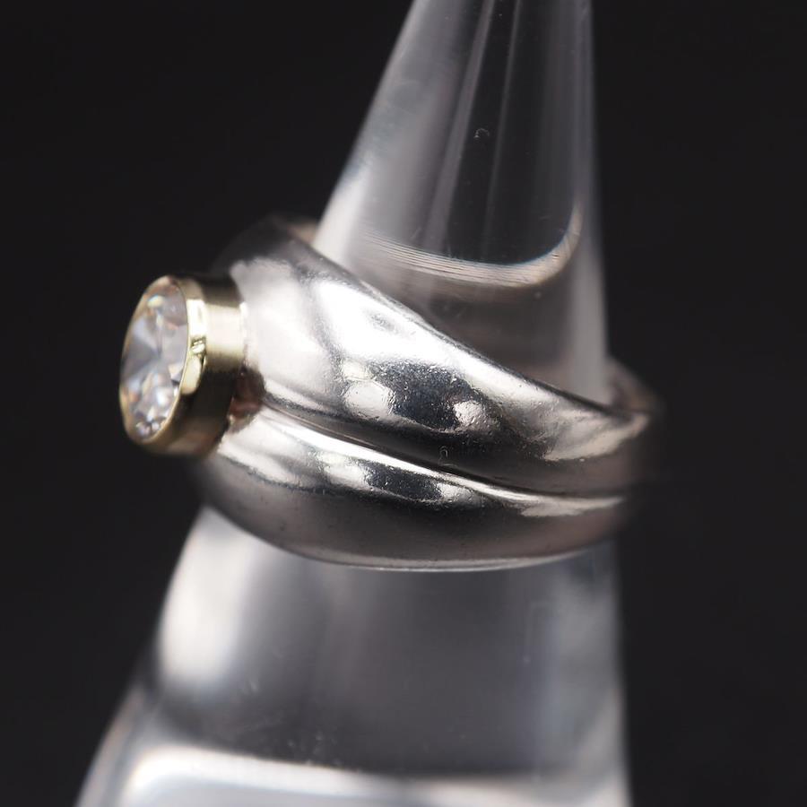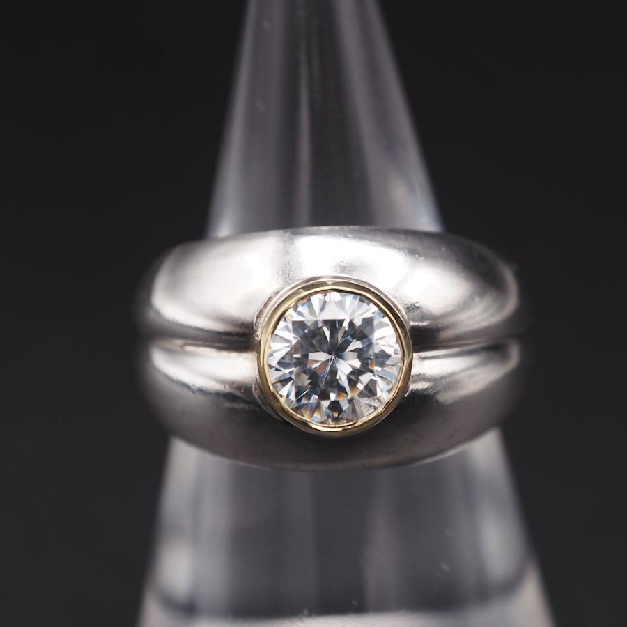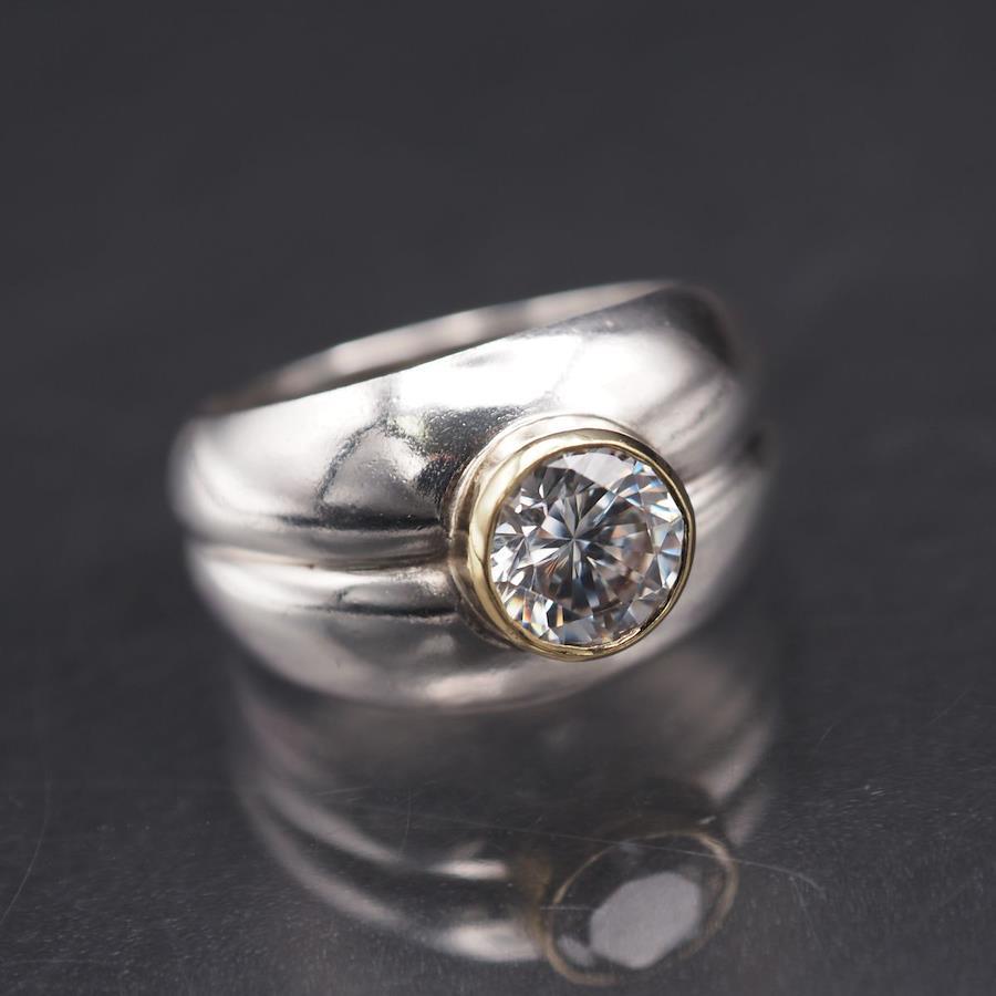 L507 Diamond-Style Ring, Gold Design, Silver, Size 12