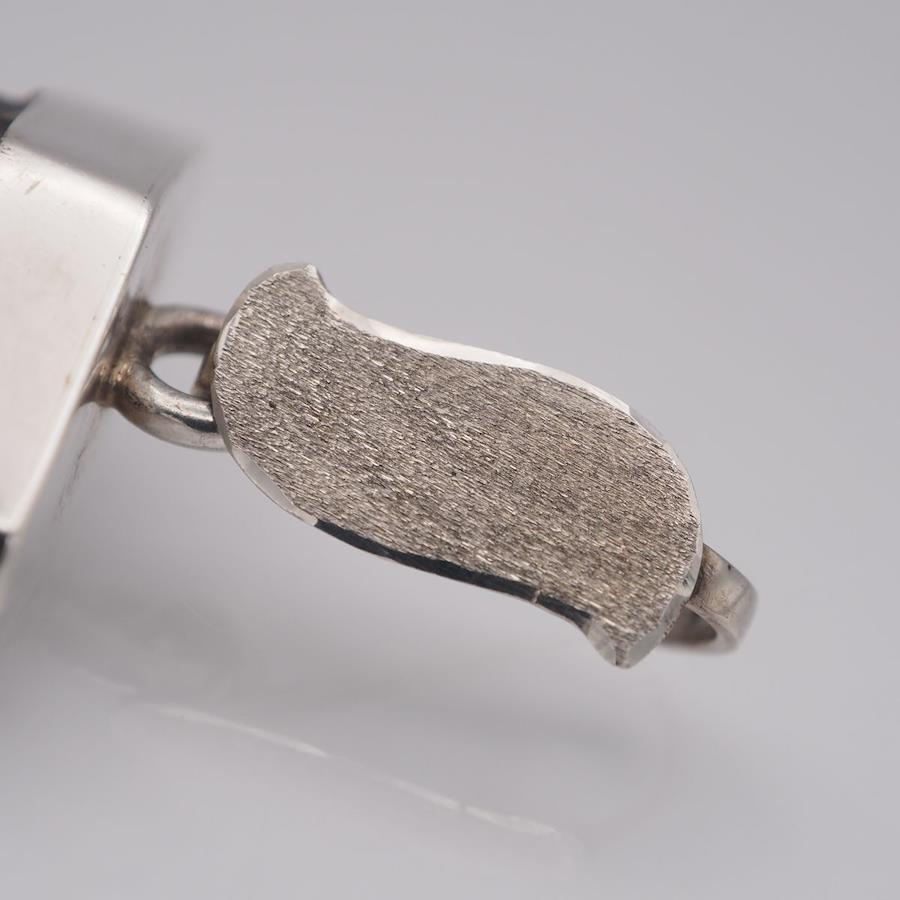 おそらく銀製かと思いますが、刻印が無いため断言できません。画像をたくさん掲載しておりますのでそちらでご確認とご判断をお願いいたします。