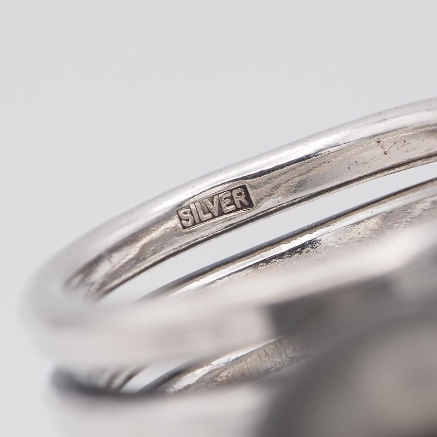 おそらく銀製かと思いますが、刻印が無いため断言できません。画像をたくさん掲載しておりますのでそちらでご確認とご判断をお願いいたします。