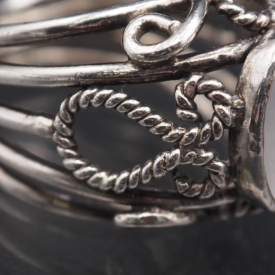 おそらく銀製かと思いますが、刻印が無いため断言できません。画像をたくさん掲載しておりますのでそちらでご確認とご判断をお願いいたします。