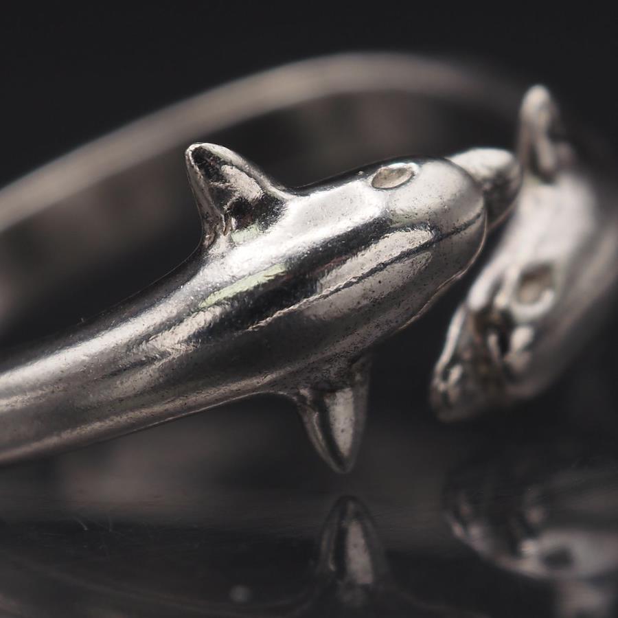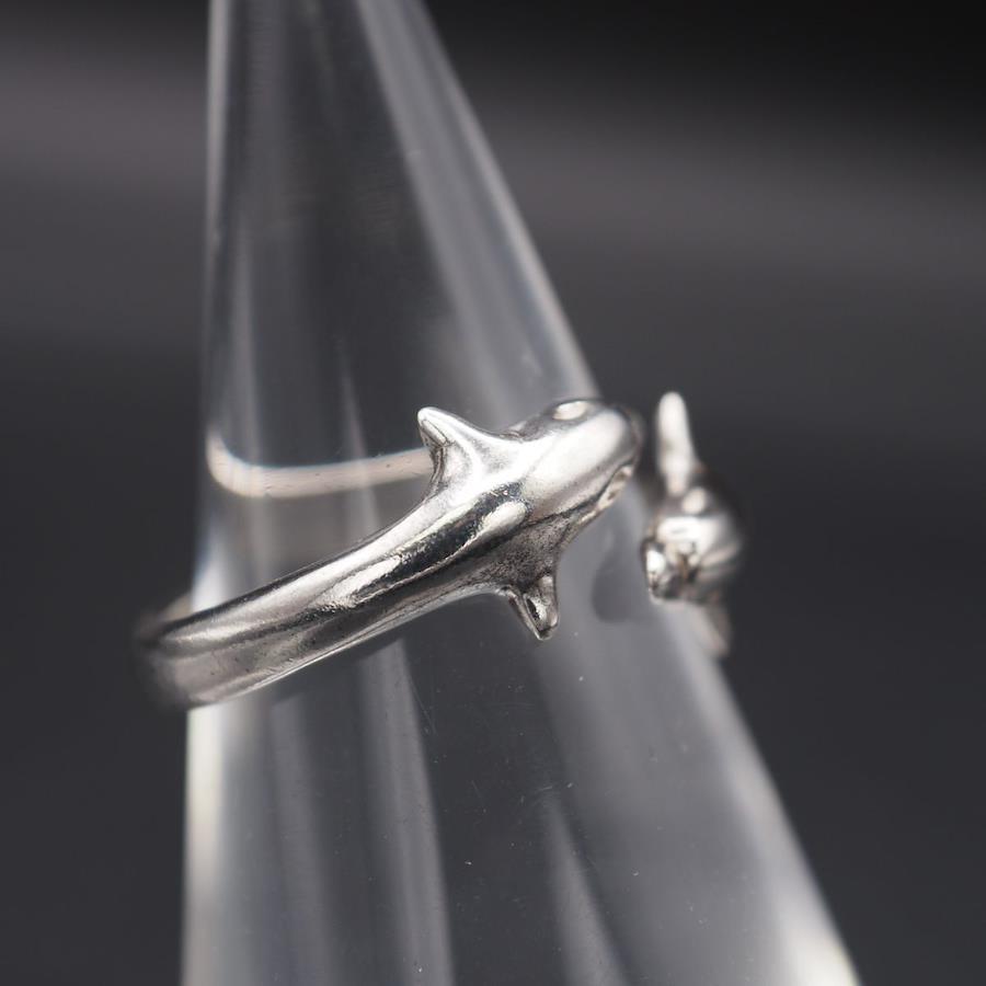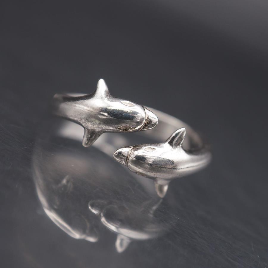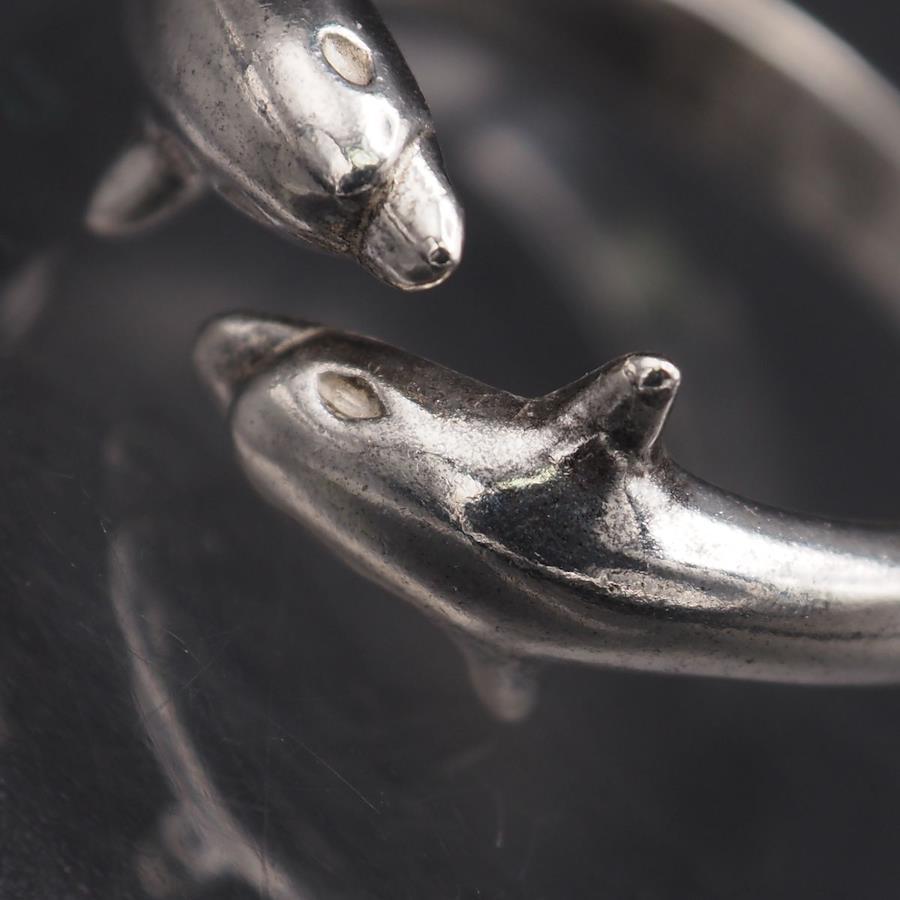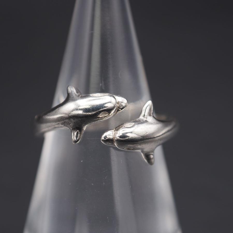 L608 Vintage STER Stamped Dolphin Design Silver Ring, Size 10