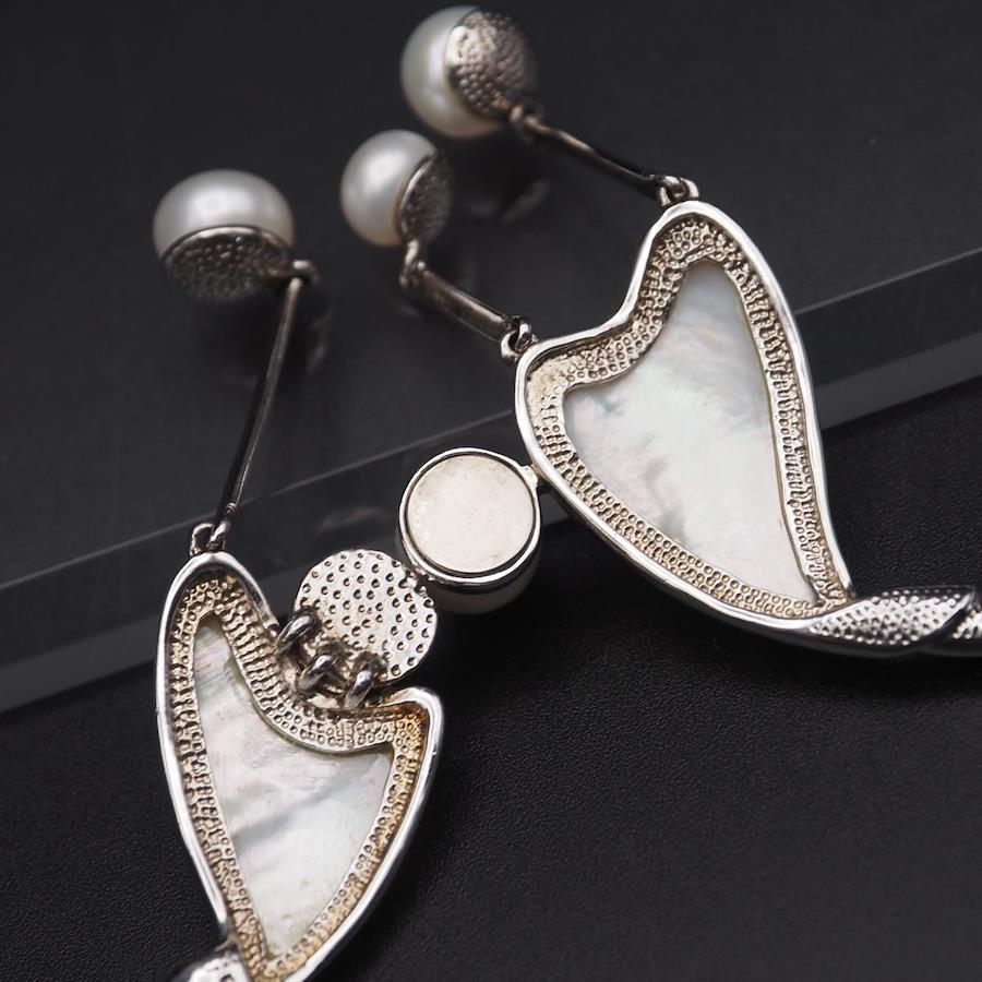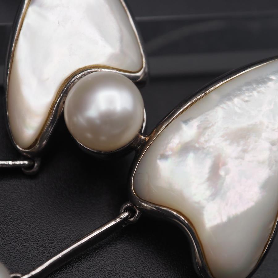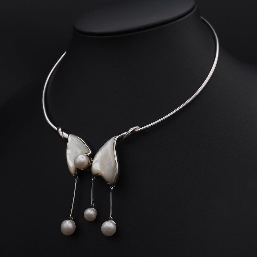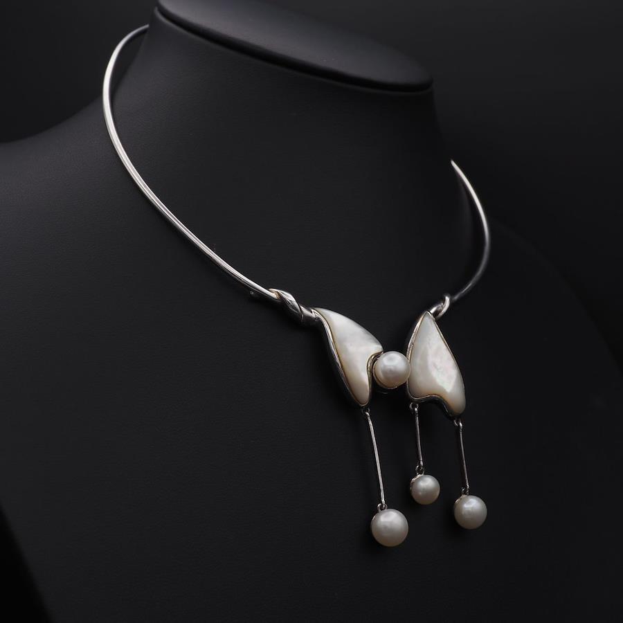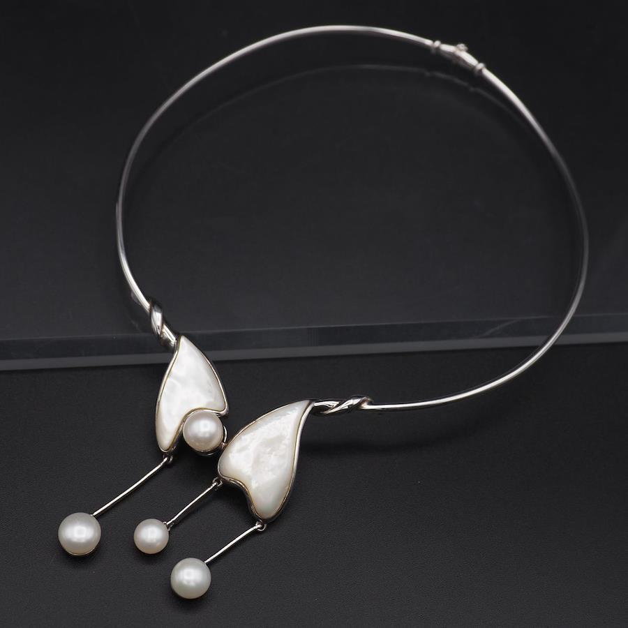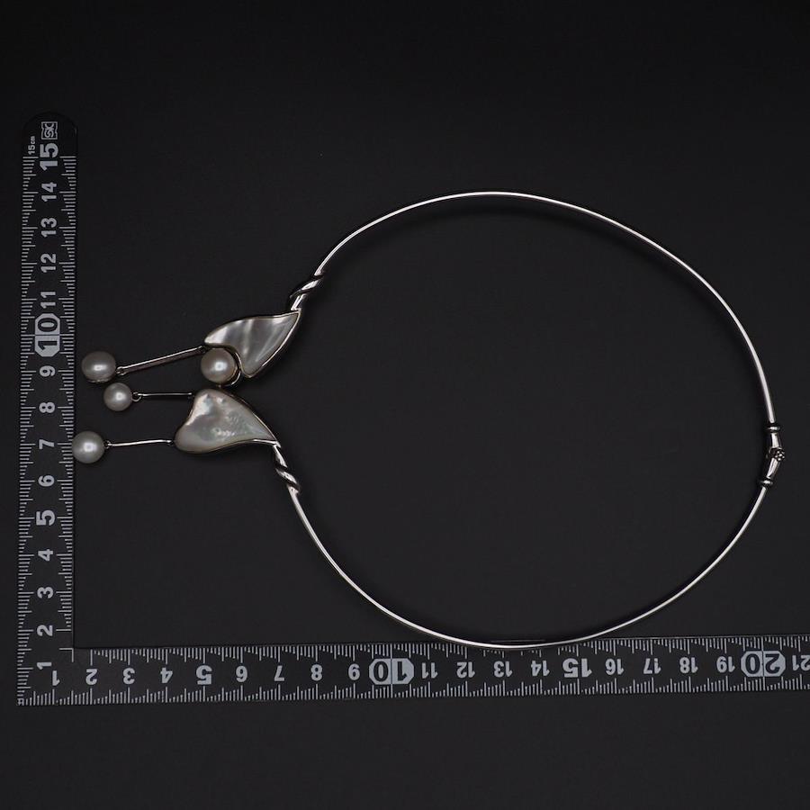 L668 Freshwater Pearl and Shell Choker Necklace, 925 Stamp, June Birthstone